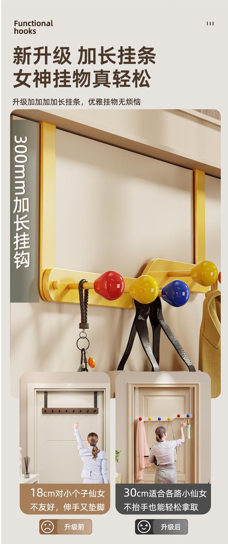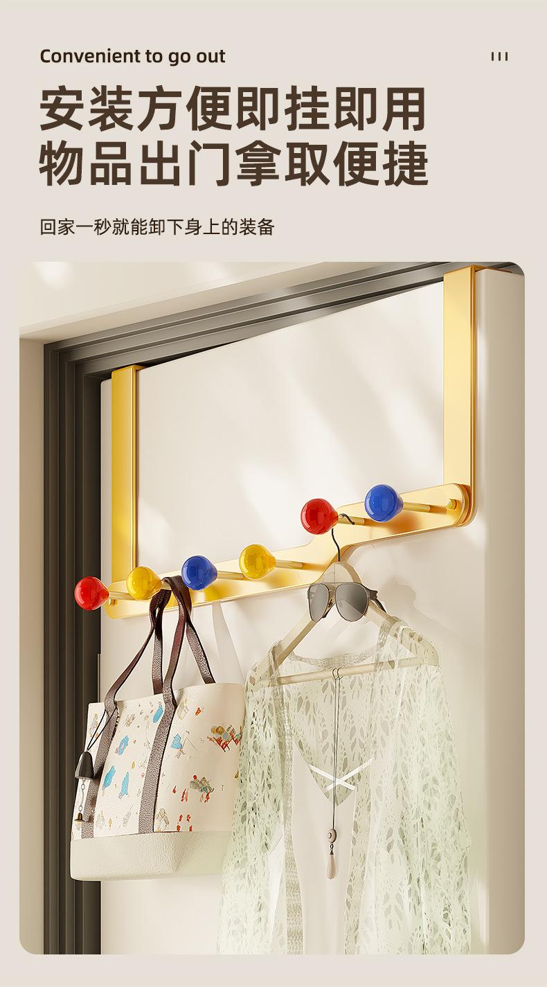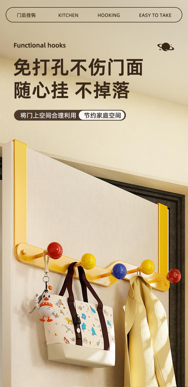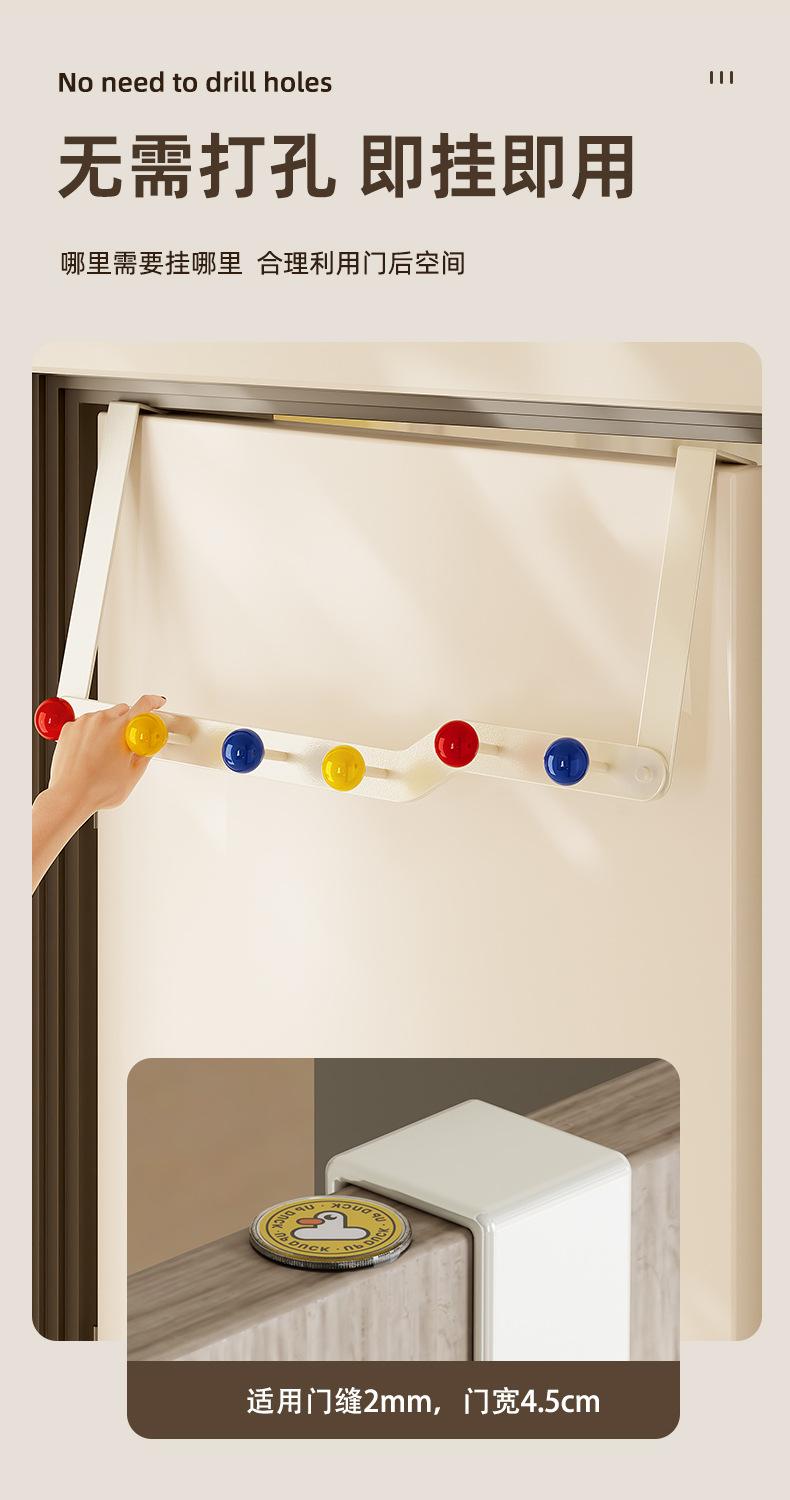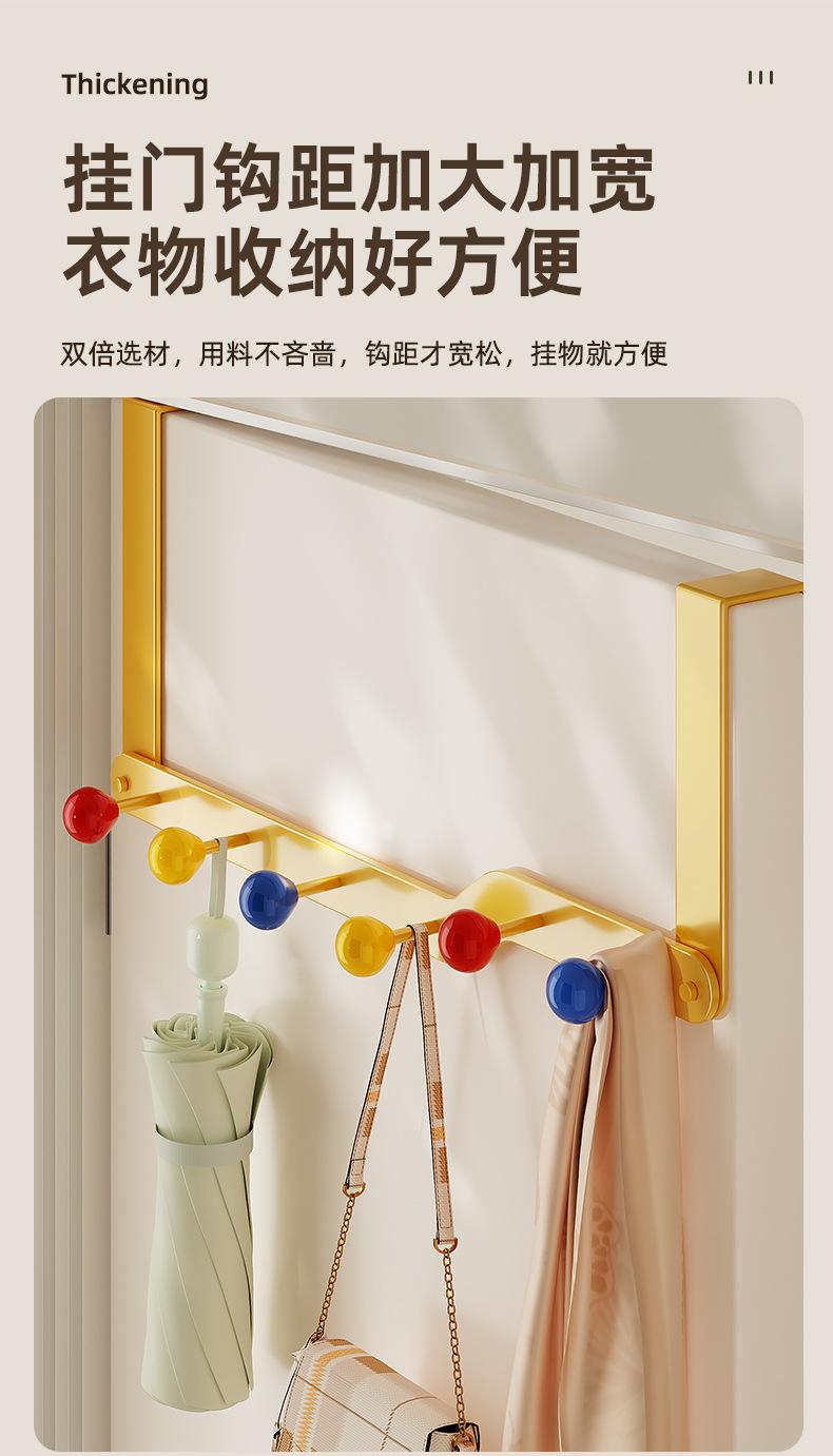 Perchero de pared estilo dopamina con riel de hierro, gancho sin rastro para puerta de dormitorio, gancho para ropa de almacenamiento sin perforaciones