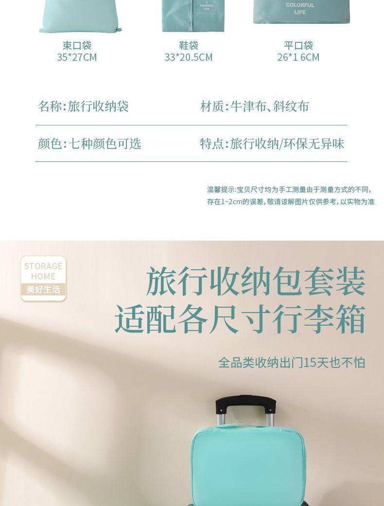 Set de Almacenamiento para Viajes Bolsa de Almacenamiento para Ropa para Viajes Siete Piezas Organizador de Ropa Interior Ropa Viaje de Negocios Portátil Bolsa de Empaque para Maleta