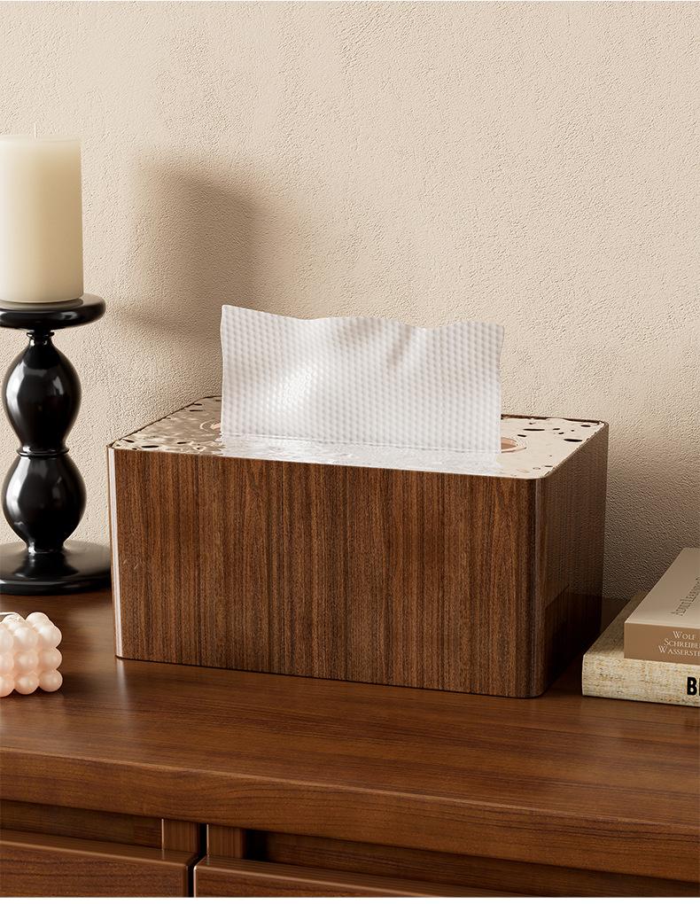 Caja de pañuelos con grano de madera de nogal estilo retro, para el hogar, sala de estar, mesa de centro, escritorio, caja de toallas de papel, adornos creativos de personalidad de alta gama