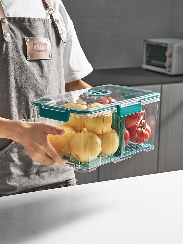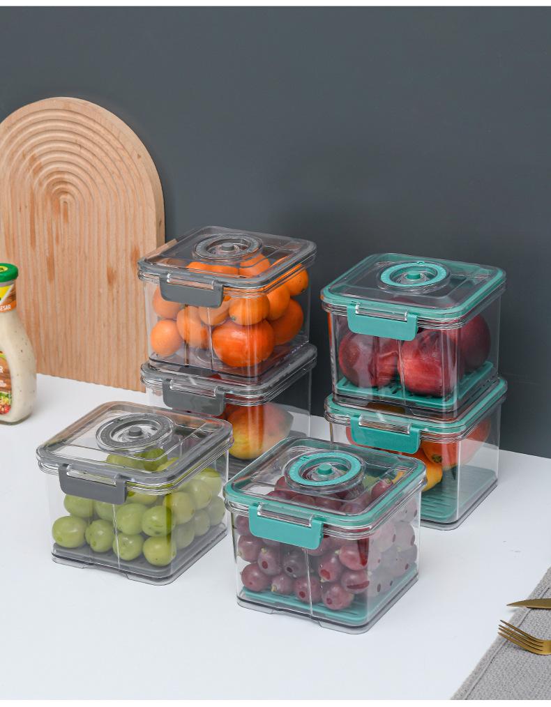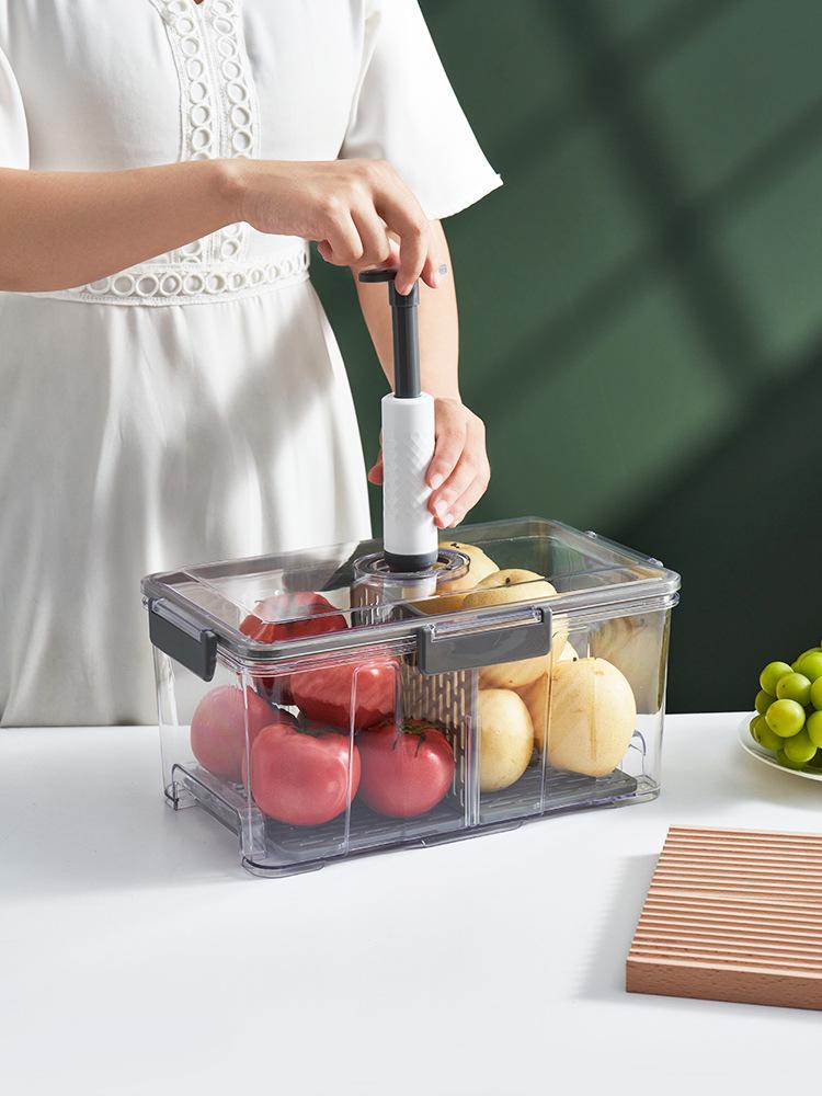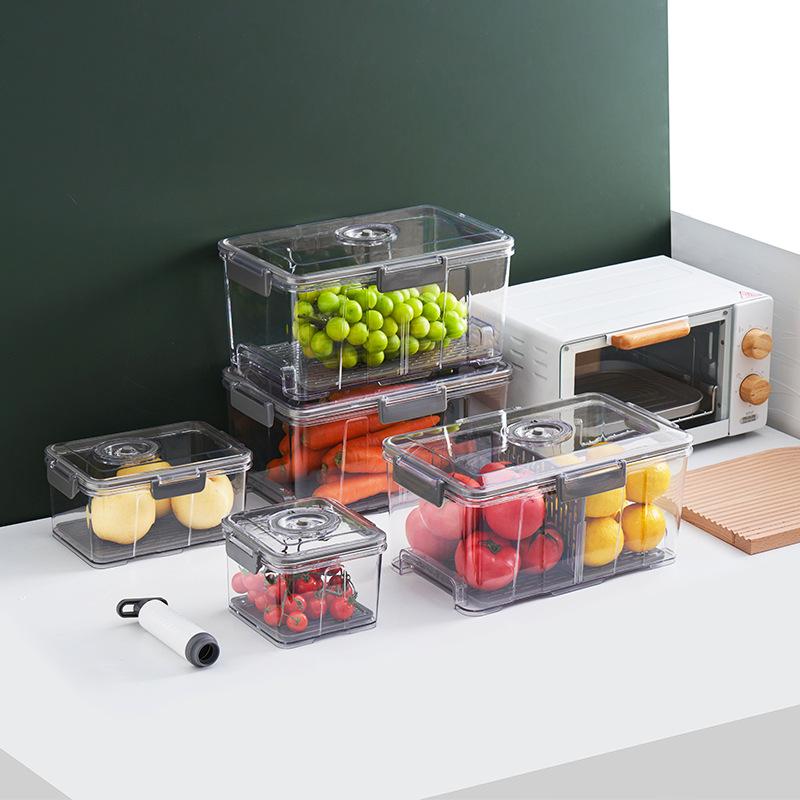Caja de Conservación al Vacío Cocina Hogar Alimentos Refrigerador Caja de Almacenamiento Extracción de Aire Sellada Fruta y Verdura Transparente Caja Sellada