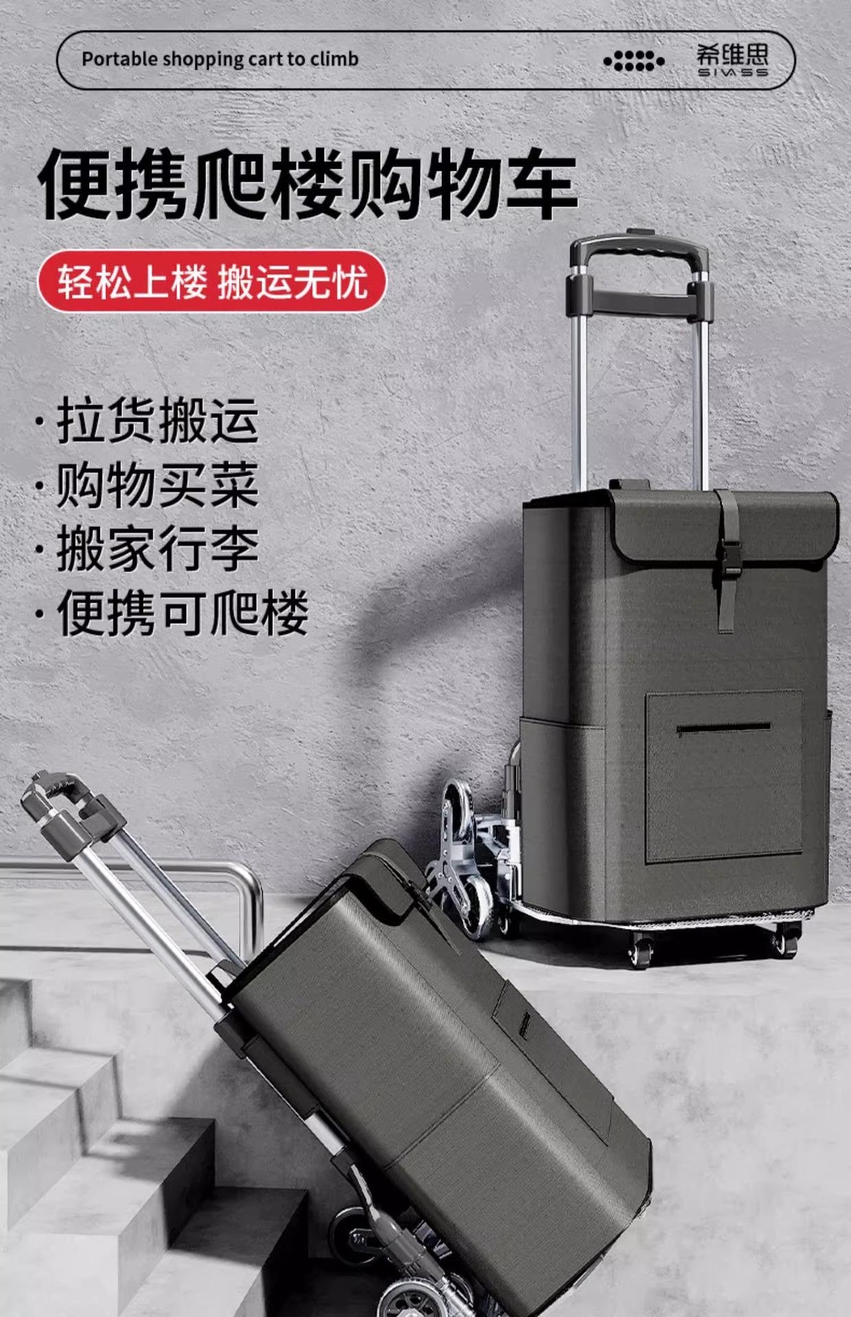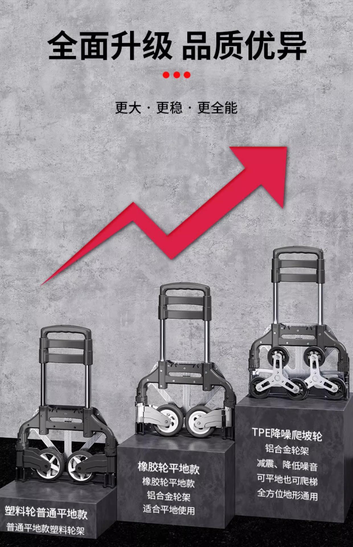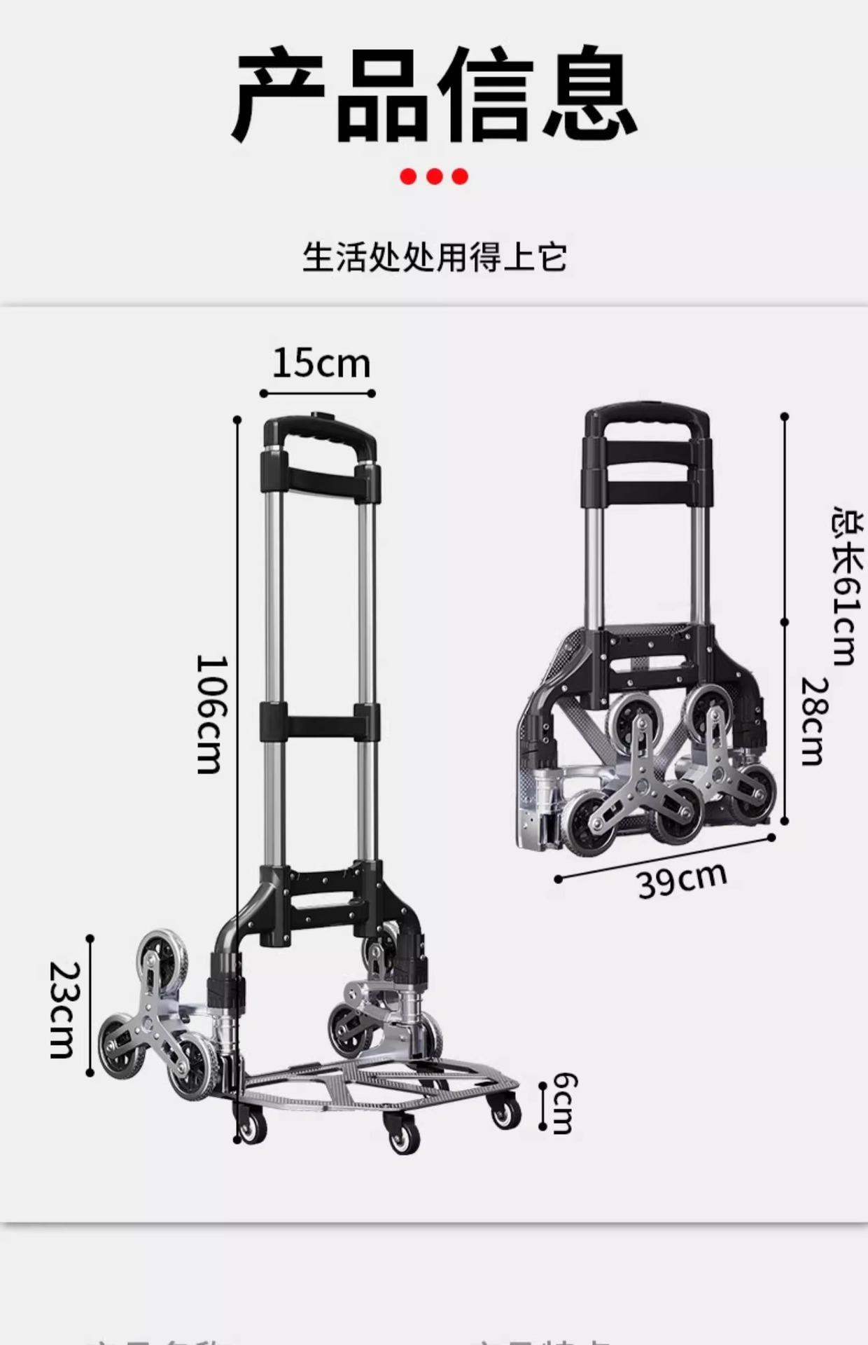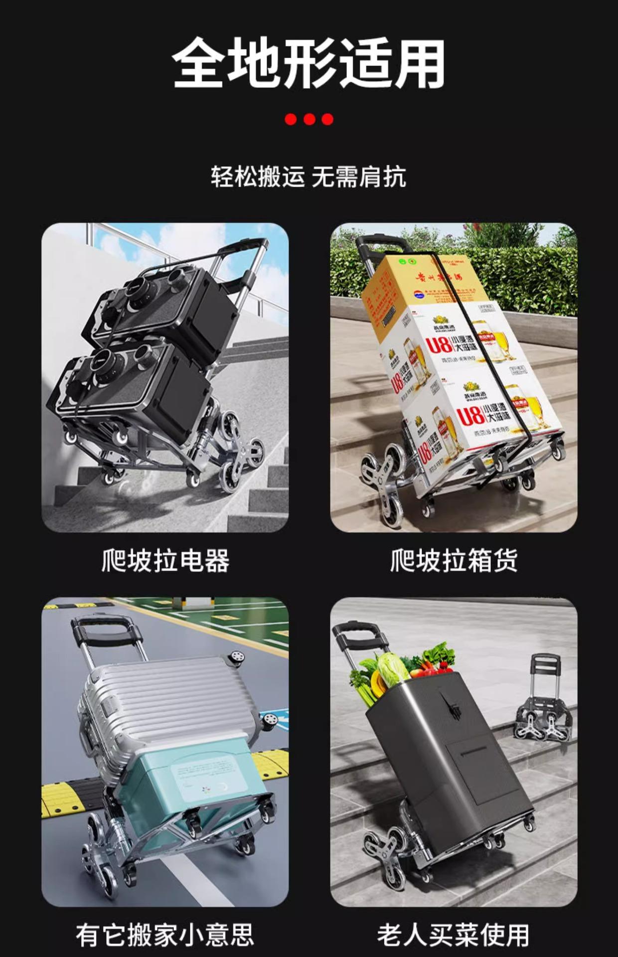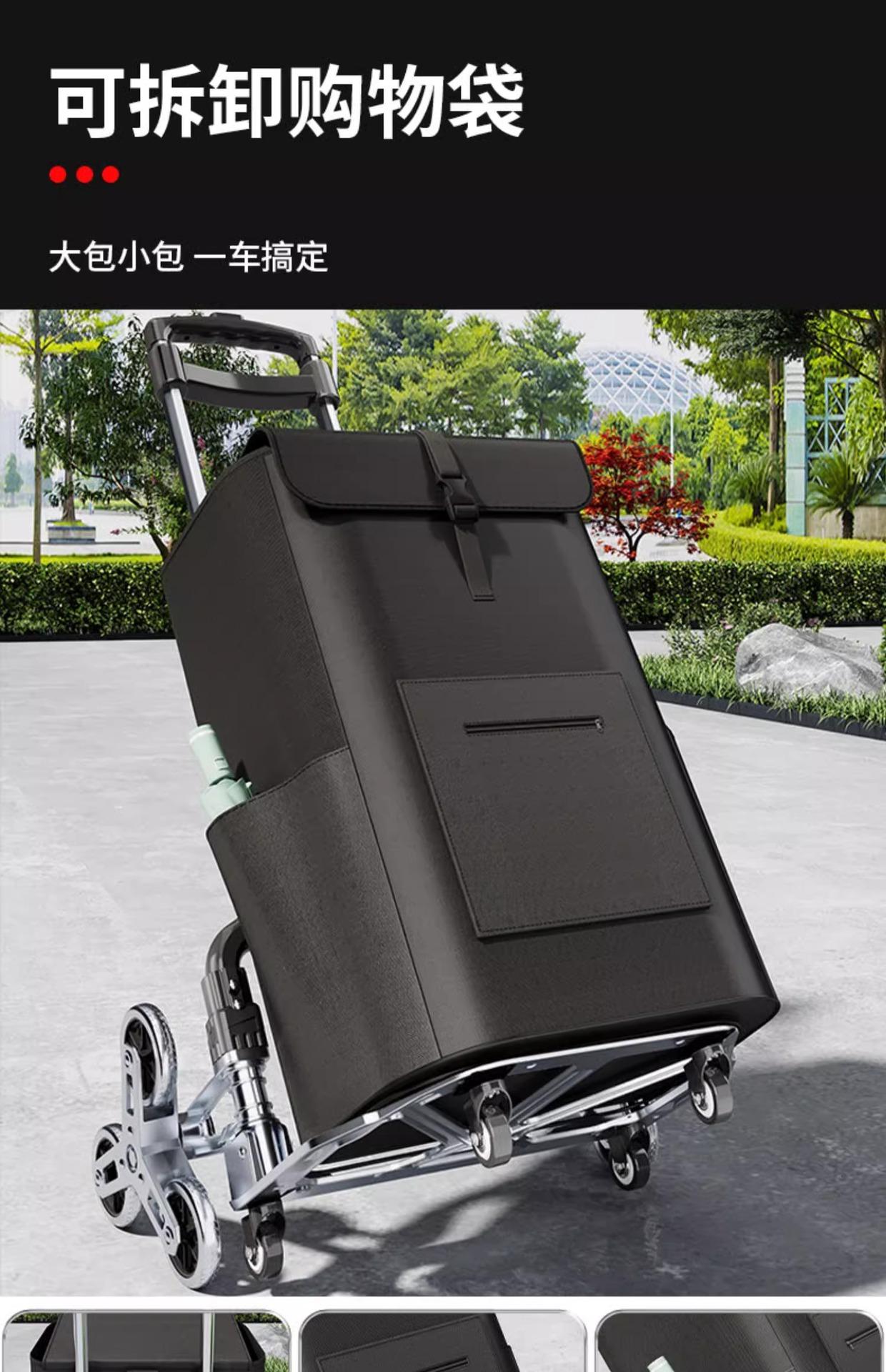 [luxury stair climbing model] reinforced stainless steel wheel frame + 6-wheel crystal climbing wheel + elastic rope + bag + four wheels