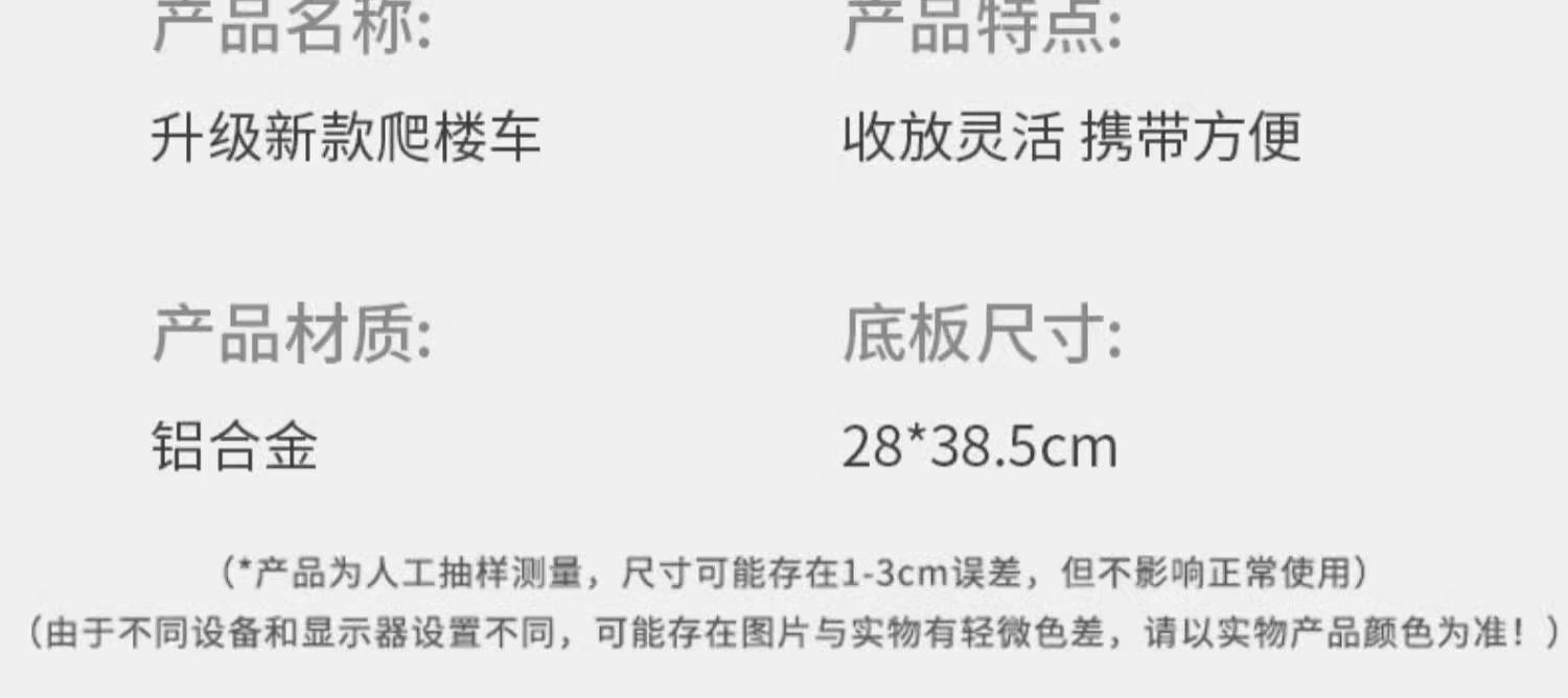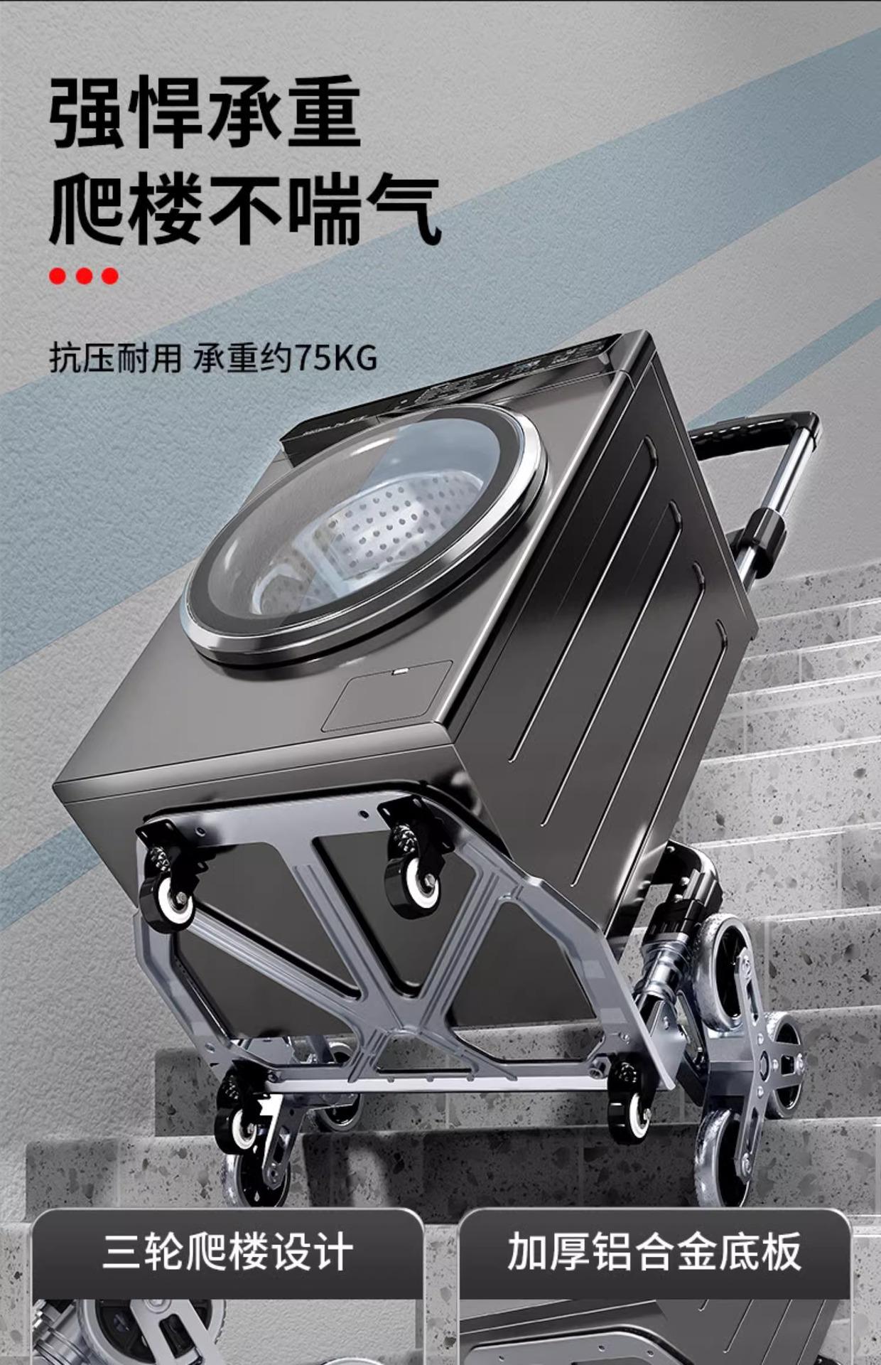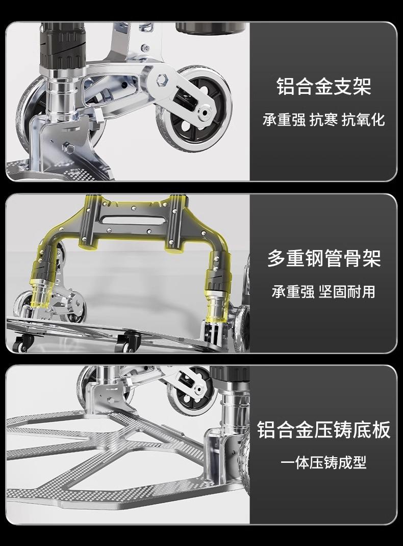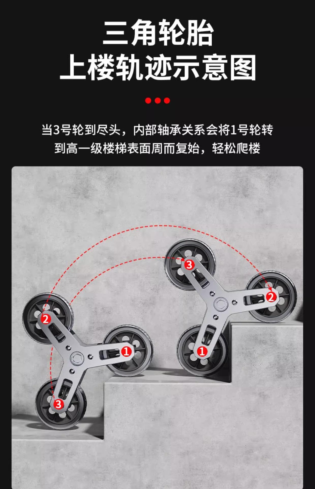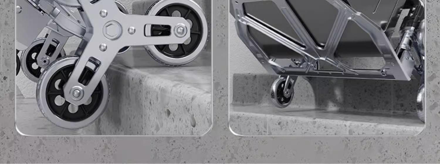 [luxury stair climbing model] reinforced stainless steel wheel frame + 6-wheel crystal stair climbing wheel + elastic rope