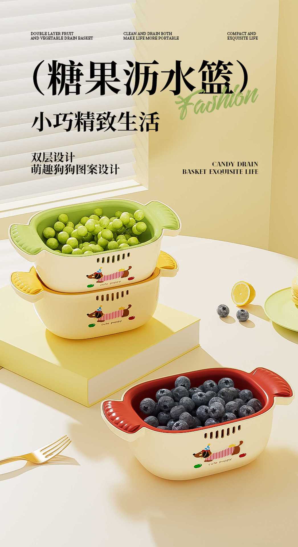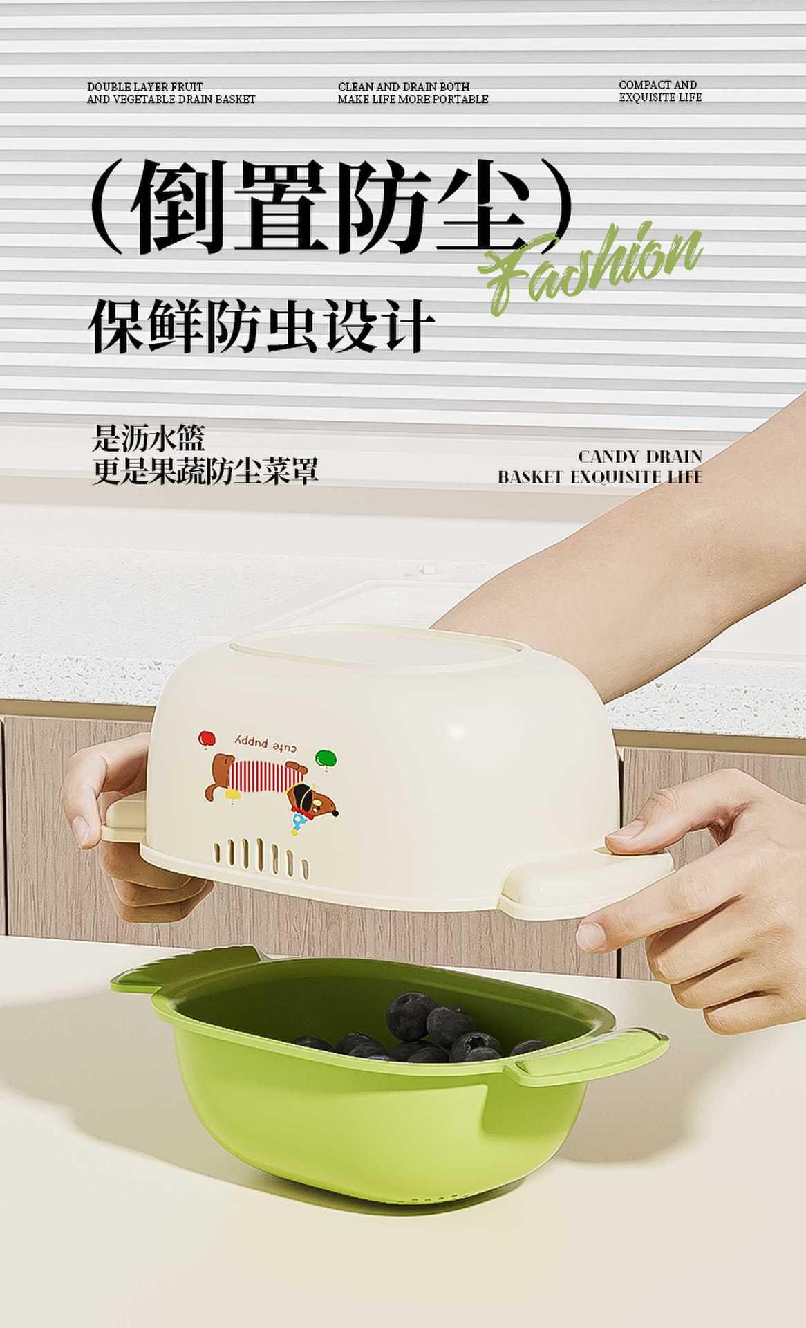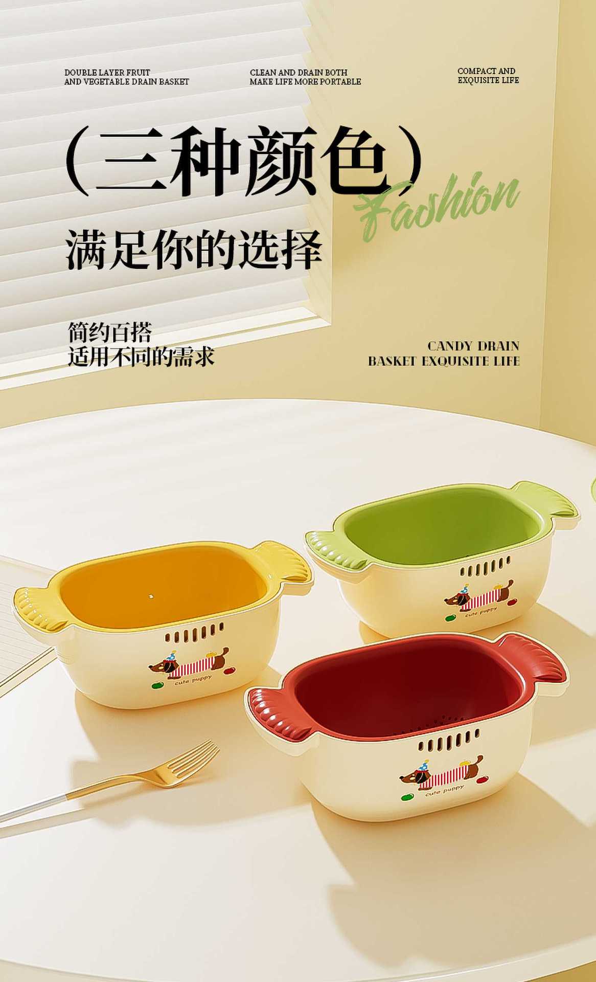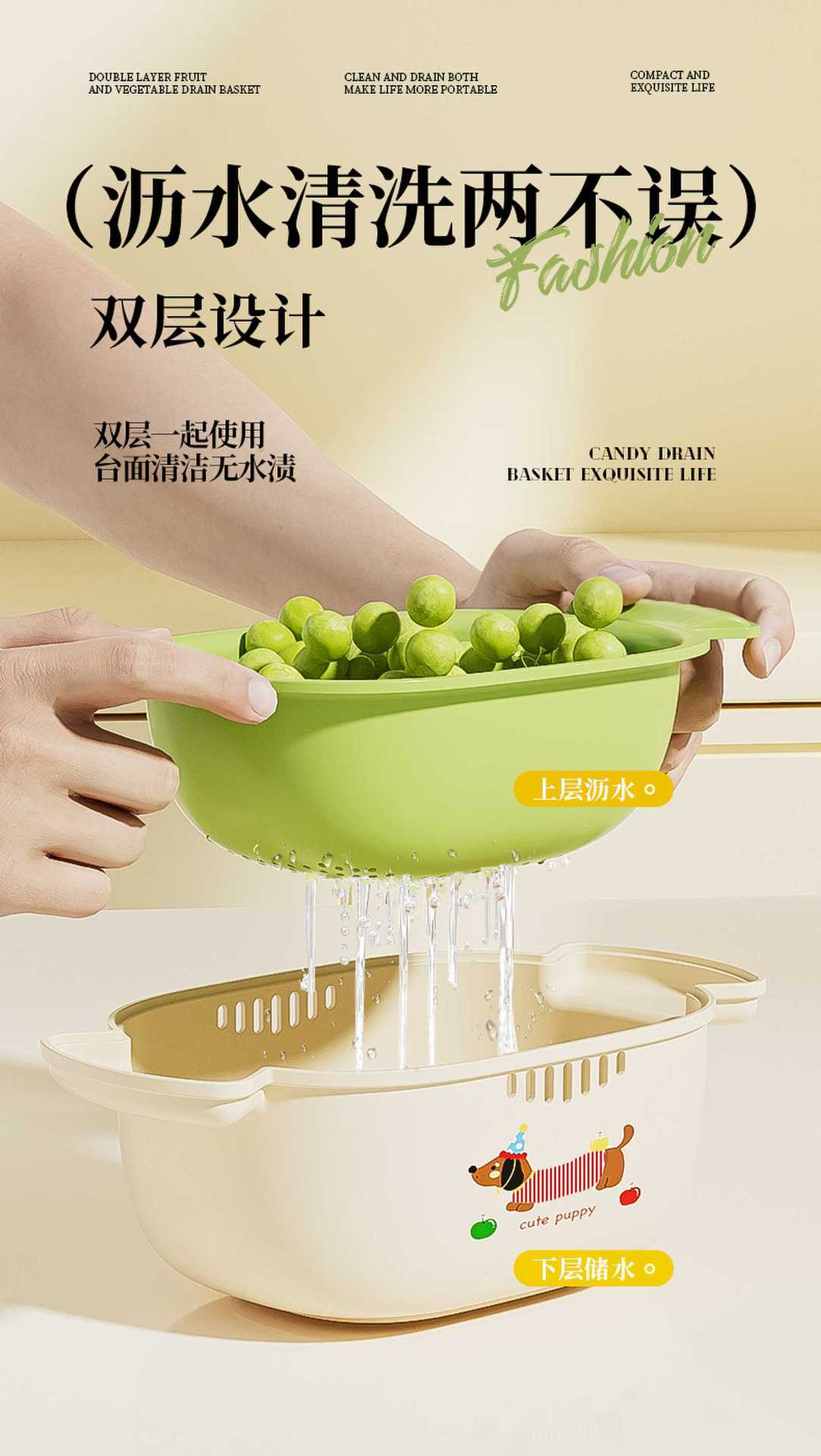 Compra Cesta de drenaje de dopamina de doble capa, bonita cesta de frutas para el hogar, filtro de agua de limpieza, plato de fruta engrosado dos en uno, cesta para lavar verduras al por mayor en Joom.pro