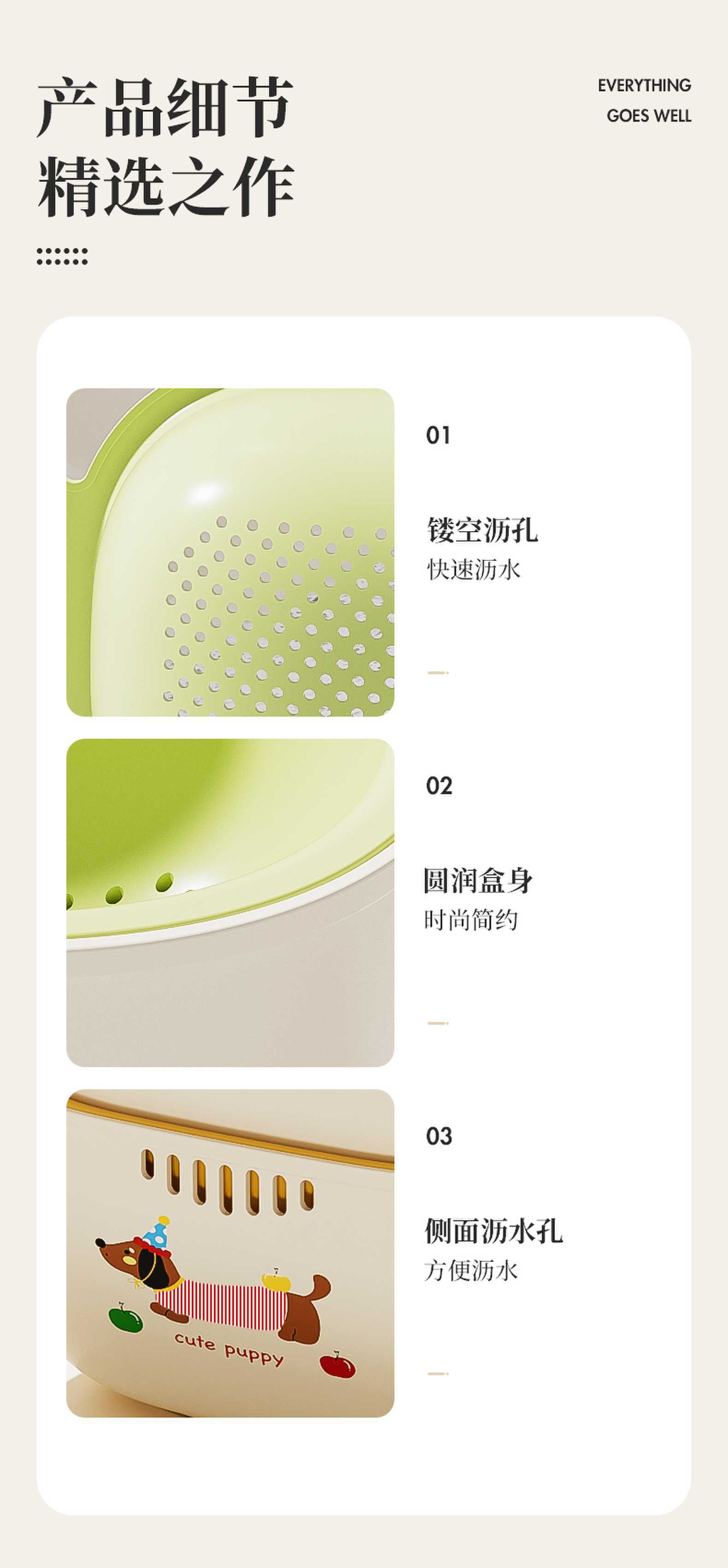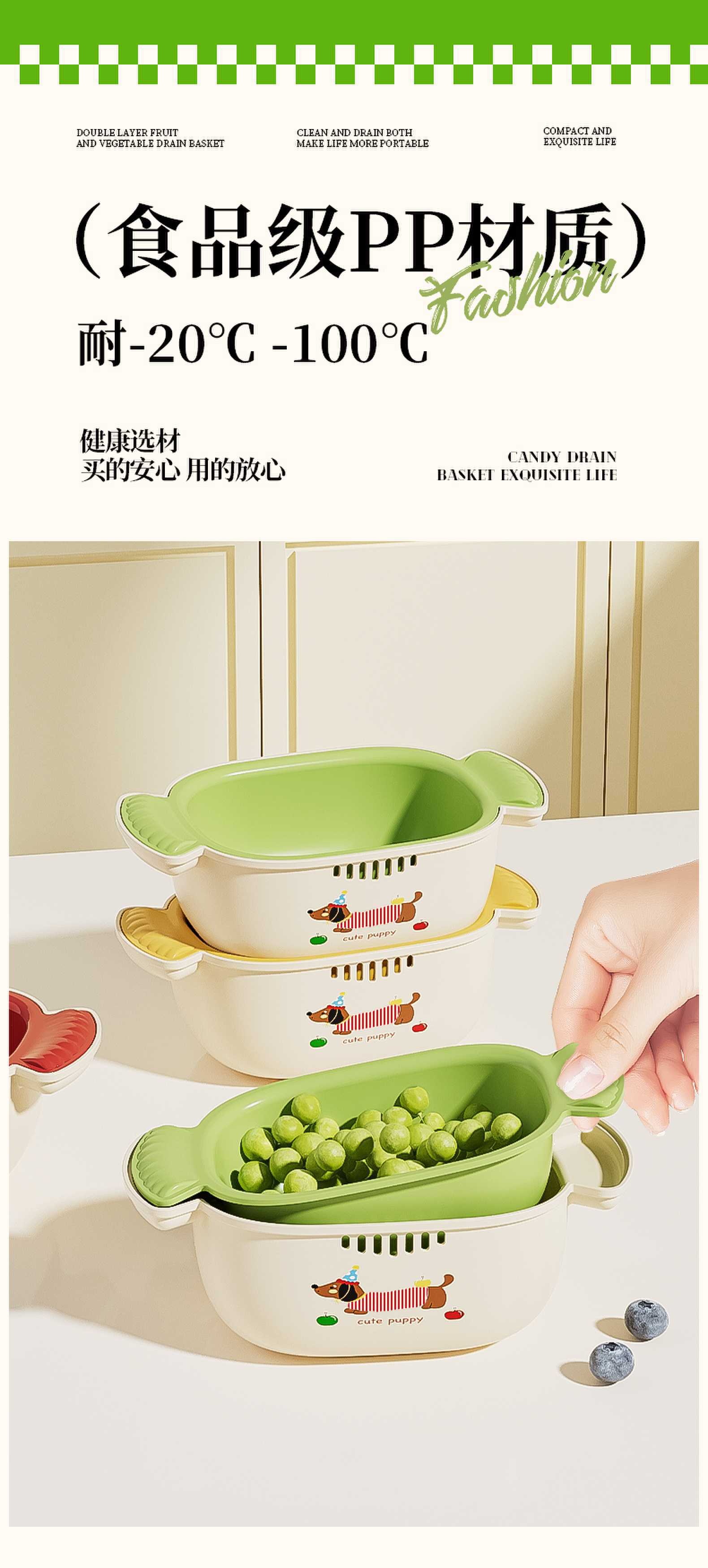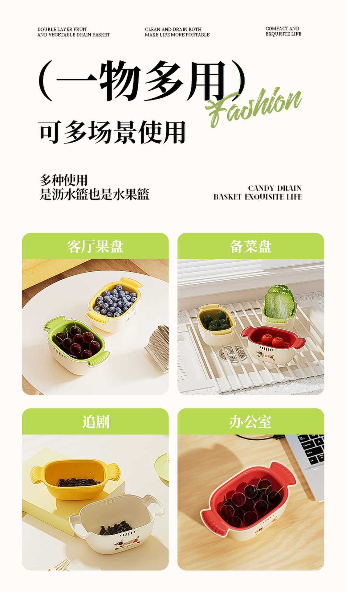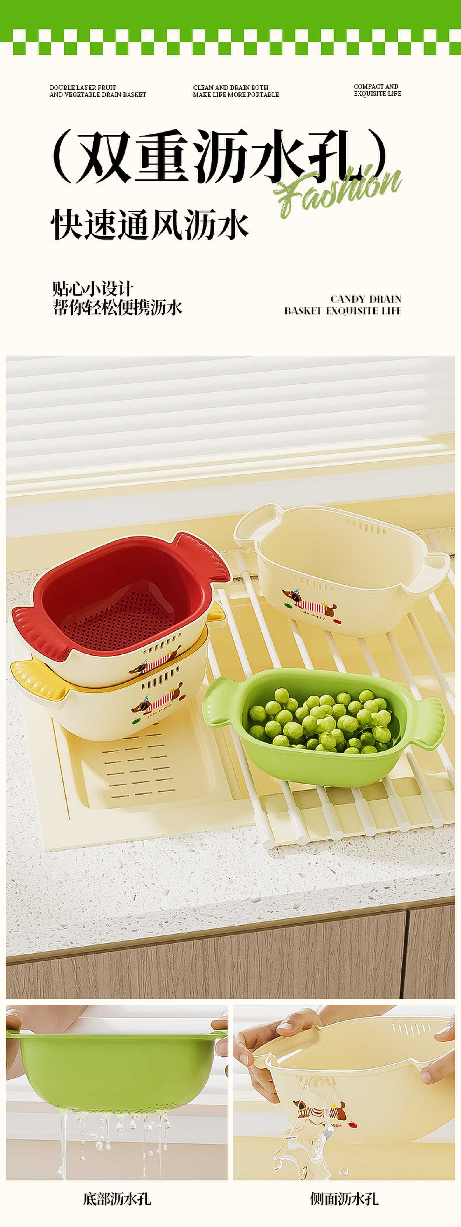 Cesta de drenaje de dopamina de doble capa, bonita cesta de frutas para el hogar, filtro de agua de limpieza, plato de fruta engrosado dos en uno, cesta para lavar verduras