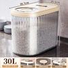 Cream white 30l [sealed and insect-proof] striped rice bucket + measuring cup