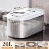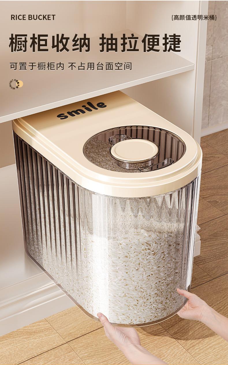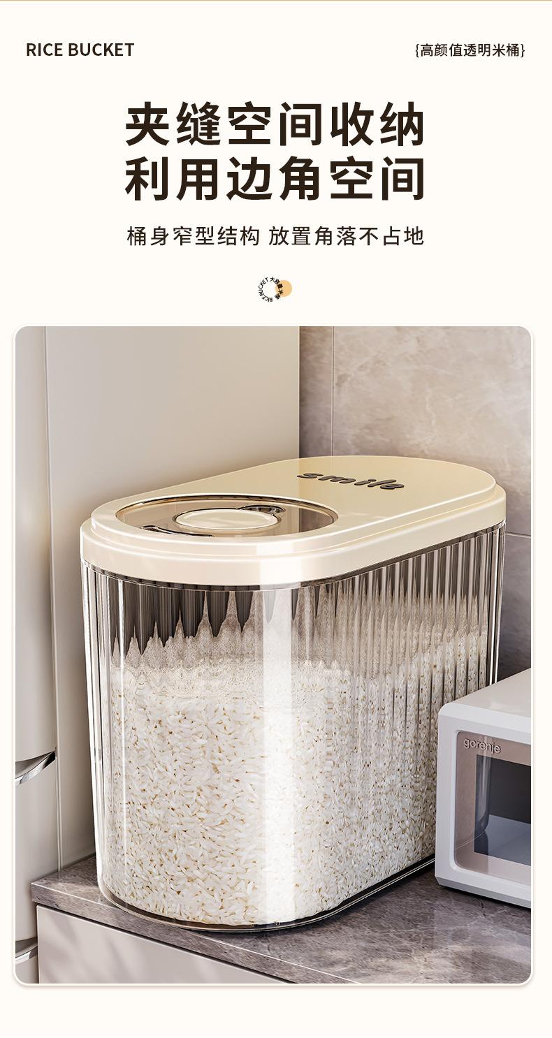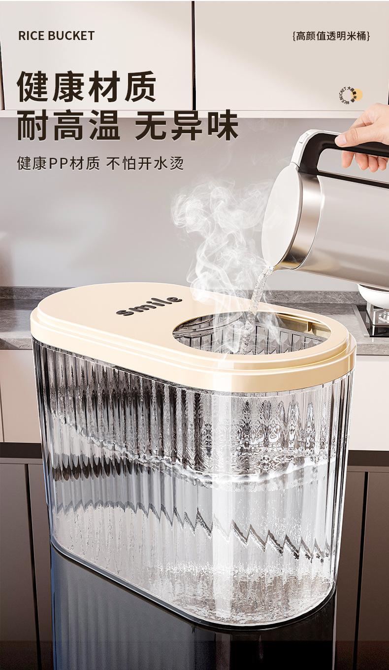 Cream white 10l [sealed and insect-proof] striped rice bucket + measuring cup, Cream white 20l [sealed and ins...