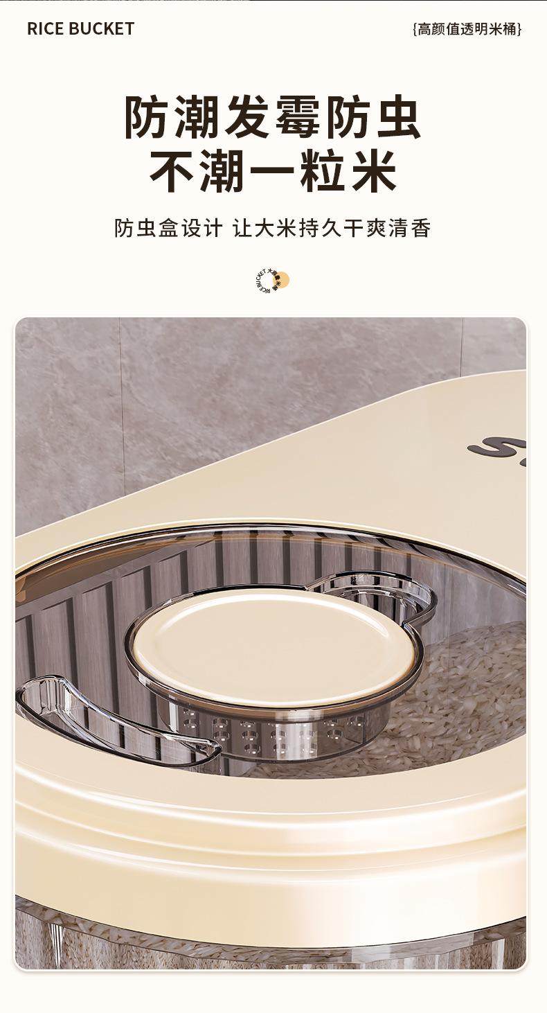 Cream white 10l [sealed and insect-proof] striped rice bucket + measuring cup