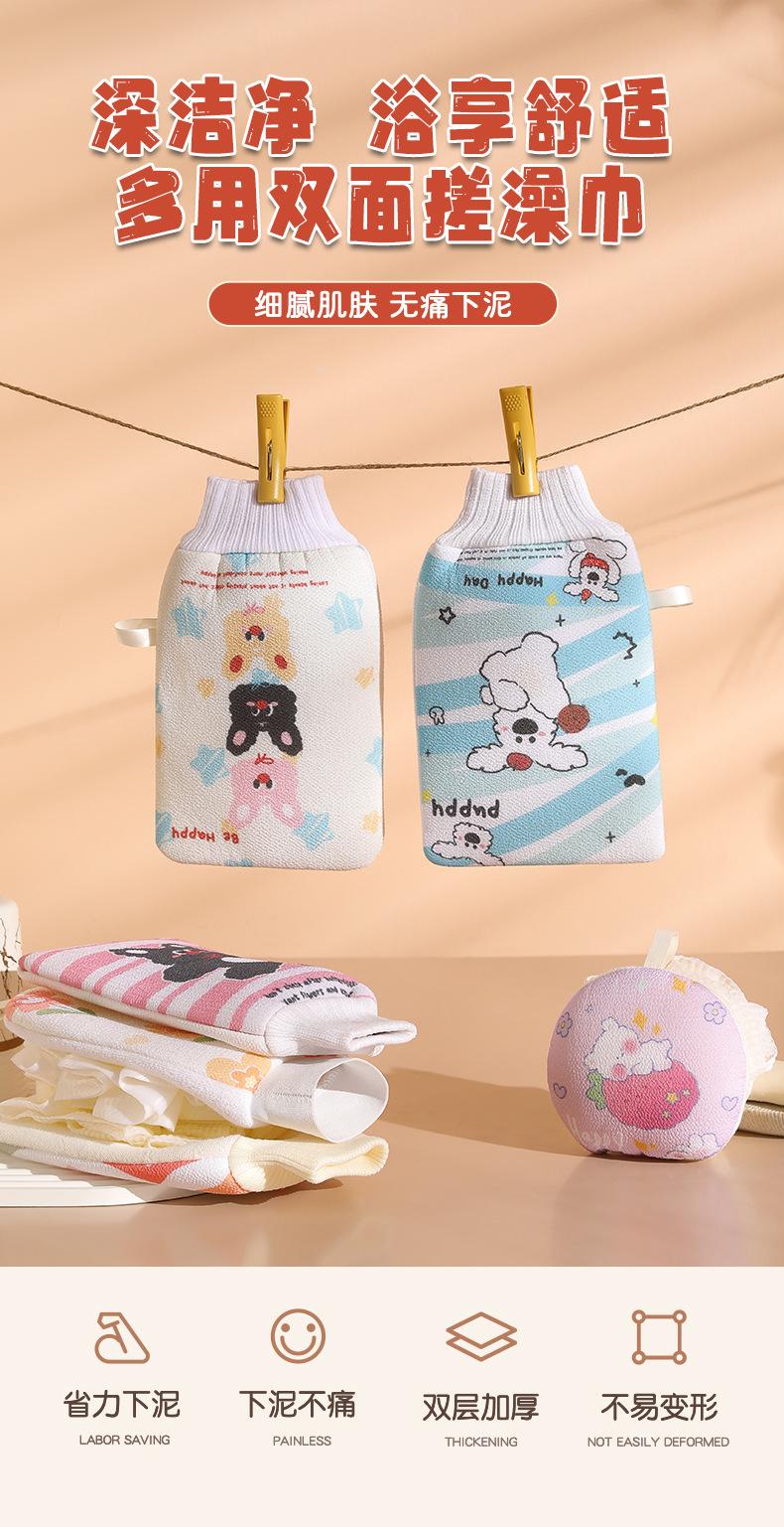 Toalla de baño exfoliante Barro exfoliante Ceniza exfoliante Espesado Doble capa Paño de baño exfoliante Guantes para frotar la espalda Guantes de baño exfoliantes para el hogar Transfronterizo