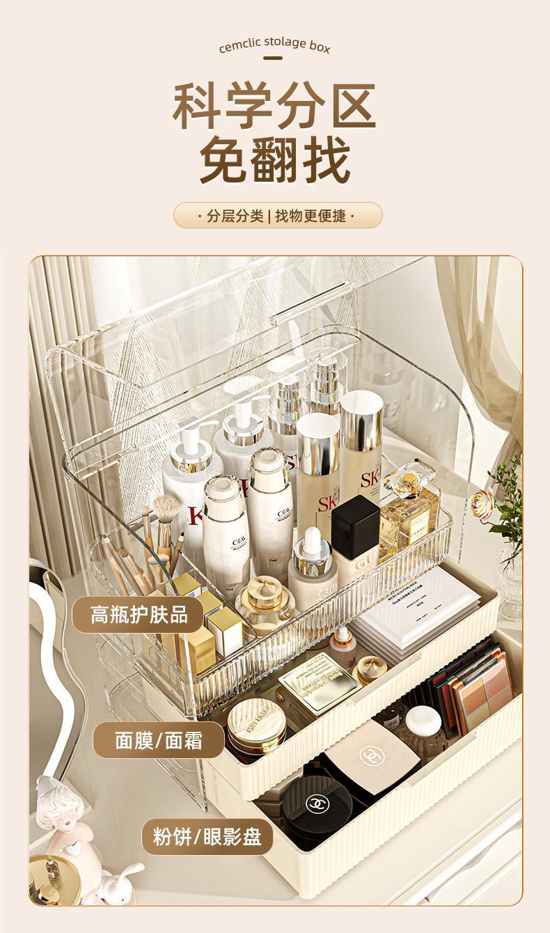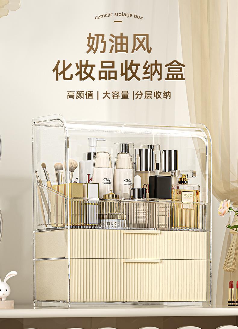 Caja de almacenamiento de cosméticos de gran capacidad, nueva caja de almacenamiento de escritorio, a prueba de polvo, lápiz labial, cuidado de la piel, tocador, estante de almacenamiento de celebridades de Internet