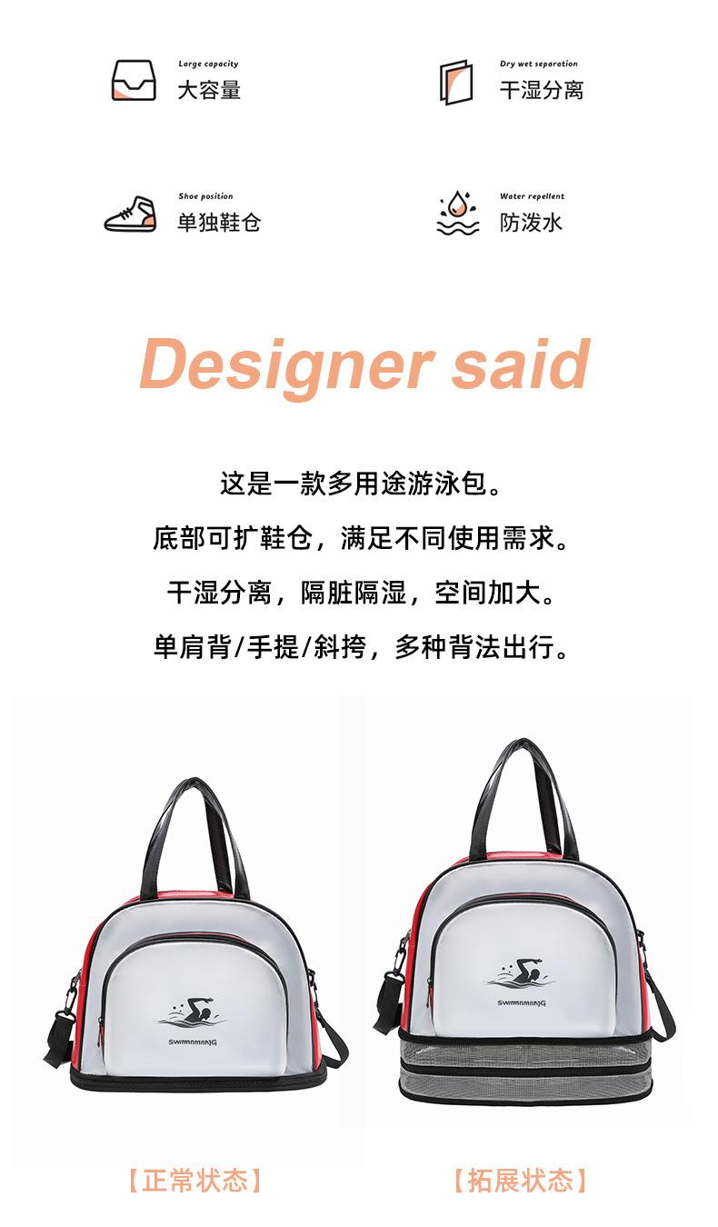 Bolsa de Natación Separación Seco y Húmedo Compartimento Expandible para Zapatos Bolsa de Lavado