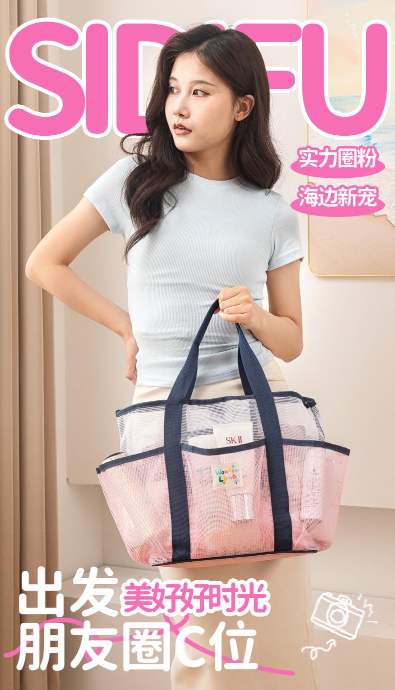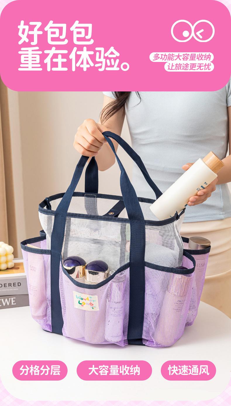 Bolsa de Natación Portátil de Malla de Gran Capacidad para Baño, Fitness, Artículos de Aseo, Multibolsillos de Malla, Almacenamiento de Traje de Baño, Viaje, Bolsa de Baño