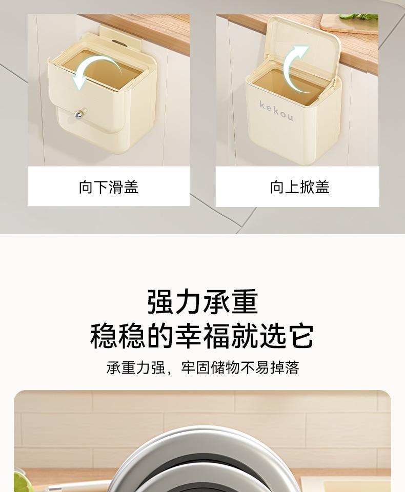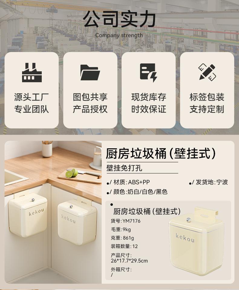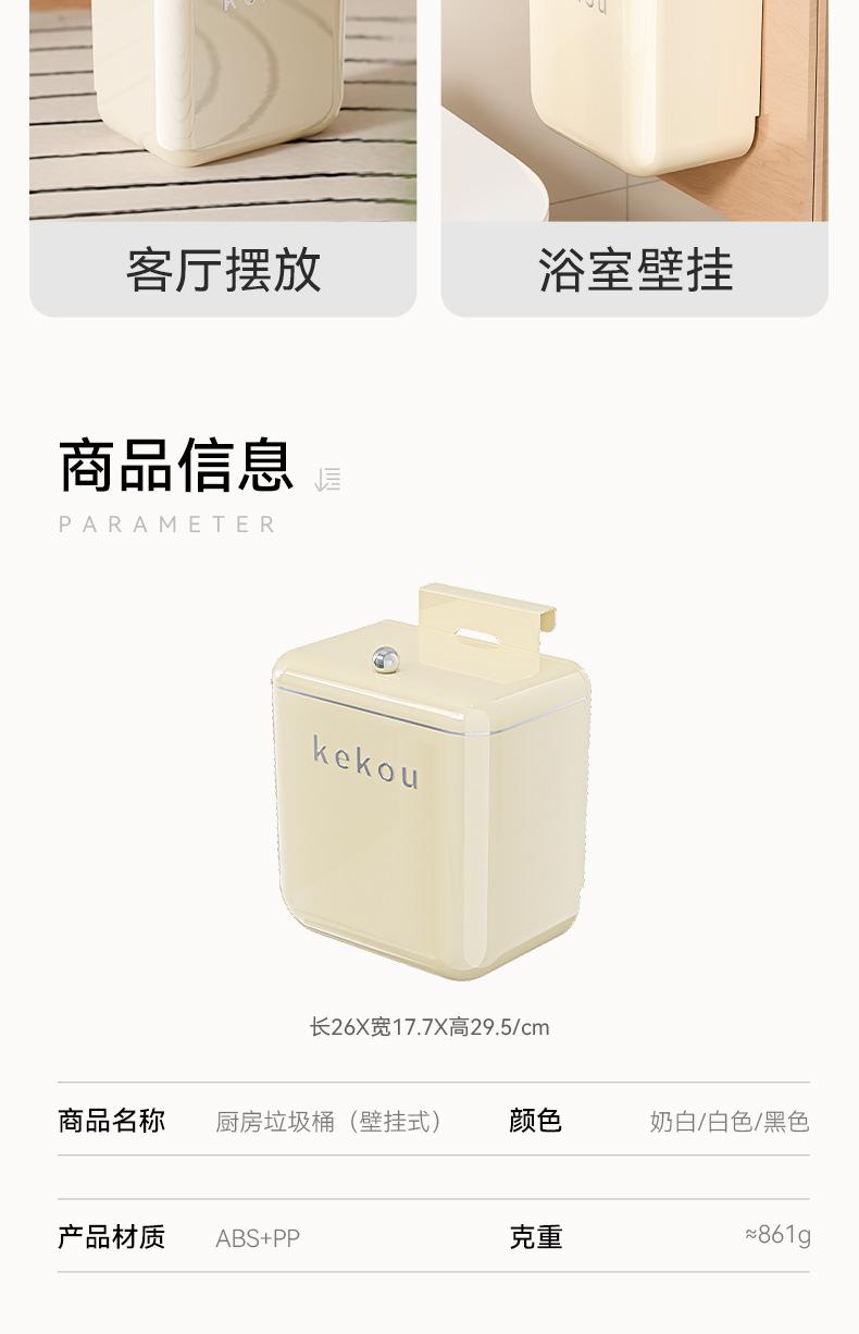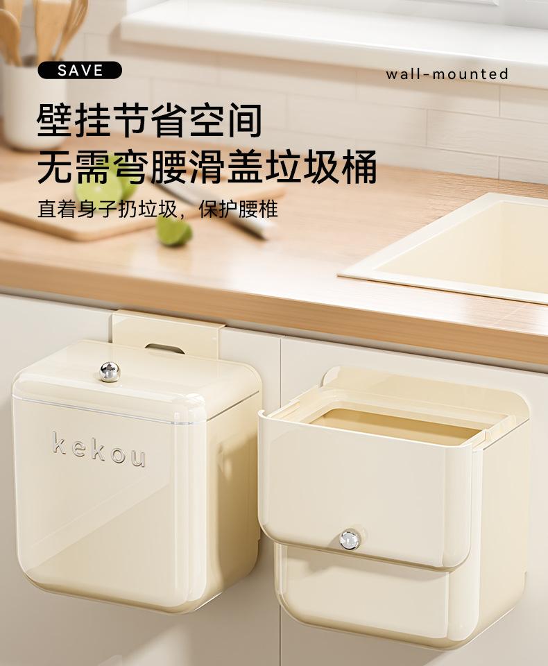 Kitchen trash can (wall-mounted)-milk white, [athens black + walnut color] suction cup style, [cream white + w...