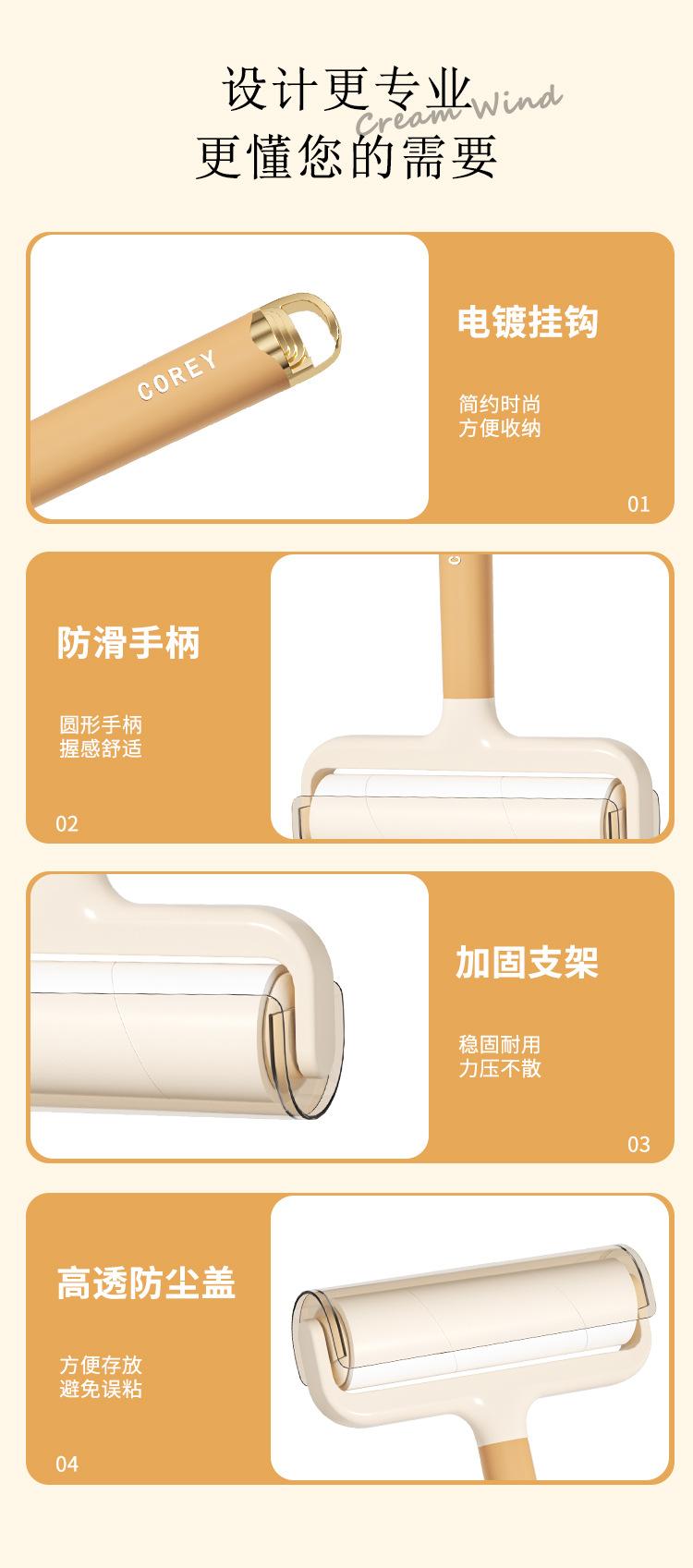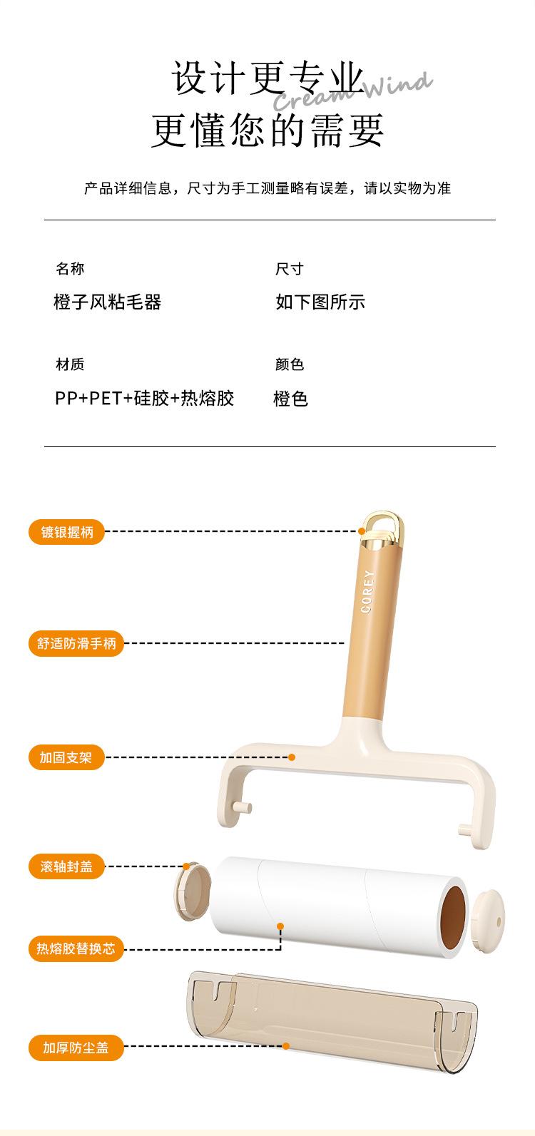 16CM Electroplated Spliced Lint Roller-Orange+1 Lint Roller Refill