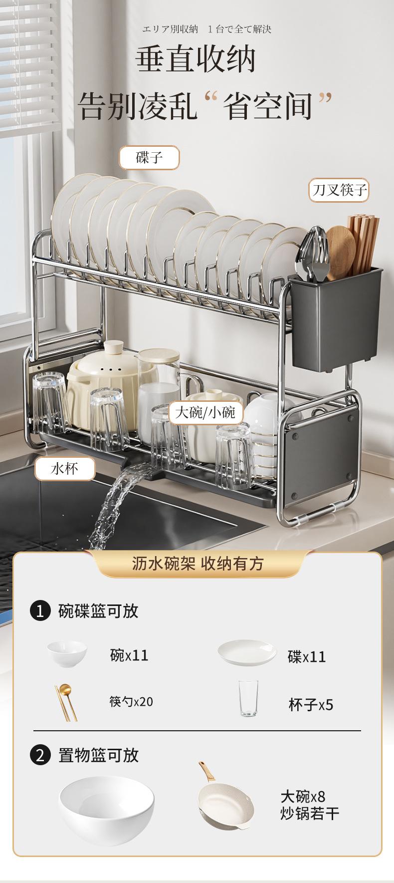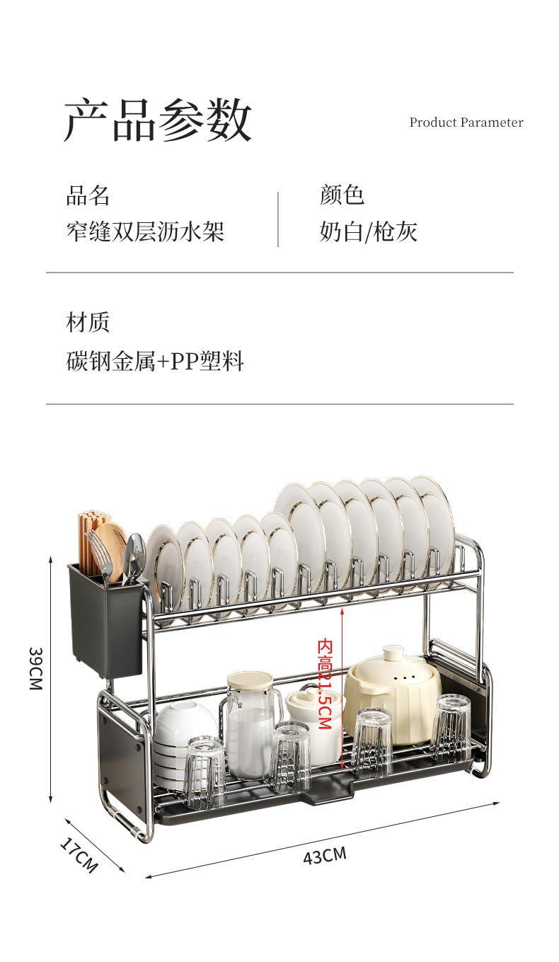 Milky White*2-Tier Dish Rack*Main Frame+Chopstick Holder, Gunmetal*2-tier Gap Dish Rack*Main Frame+Chopstick H...