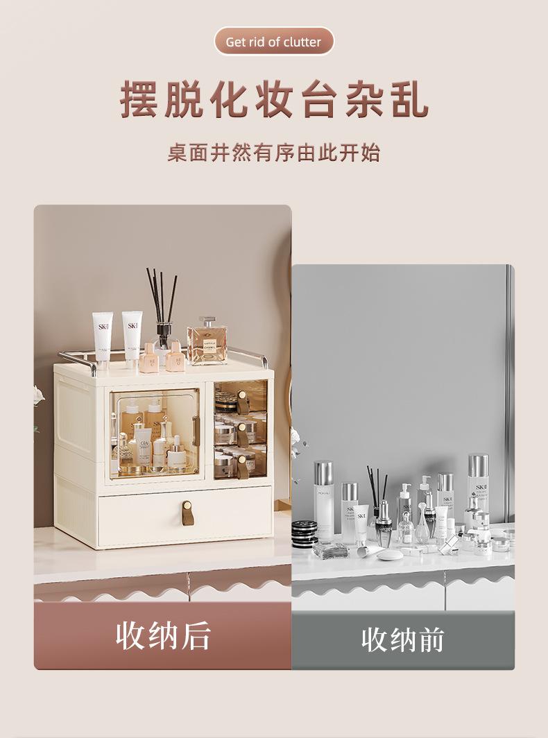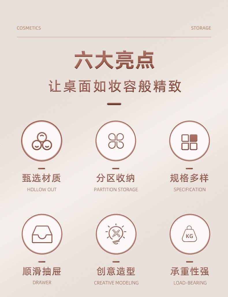 Caja de almacenamiento de cosméticos tipo cajón de alta gama para tocador, lápiz labial, productos para el cuidado de la piel, caja de almacenamiento de escritorio, joyero