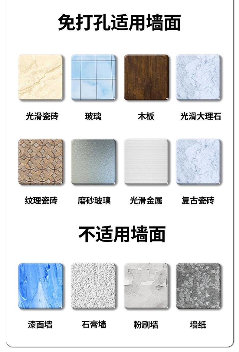 (2) Tenga en cuenta que la superficie de la pared debe ser plana y sólida, como baldosas de vidrio.No disponible enSobre paredes irregulares e inestables como paredes pintadas, empapeladas y paredes de cal.