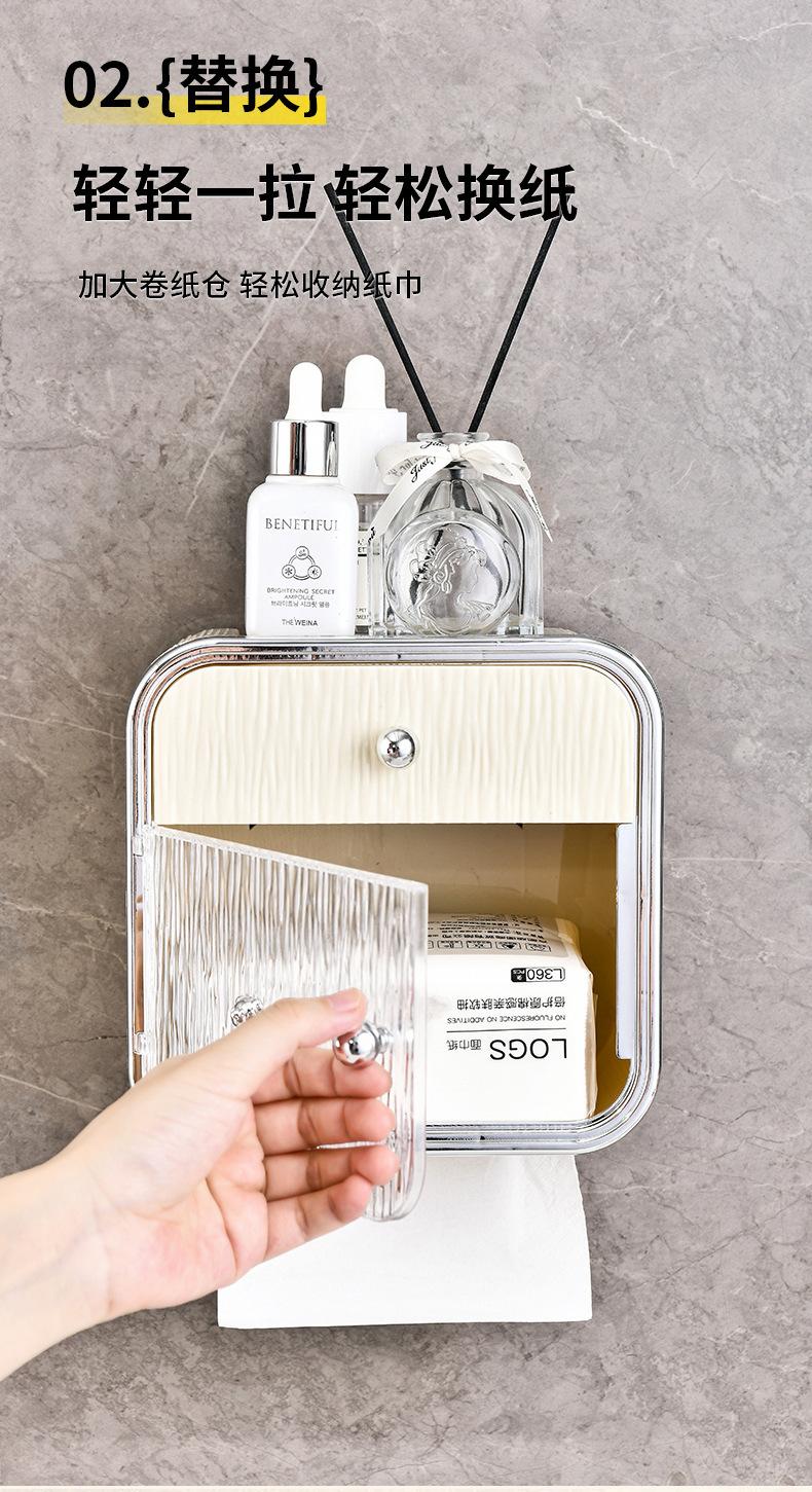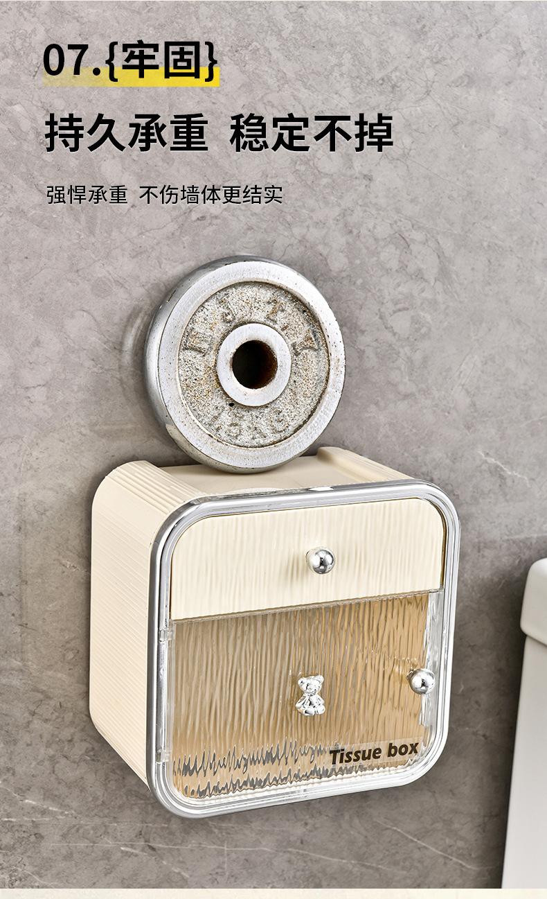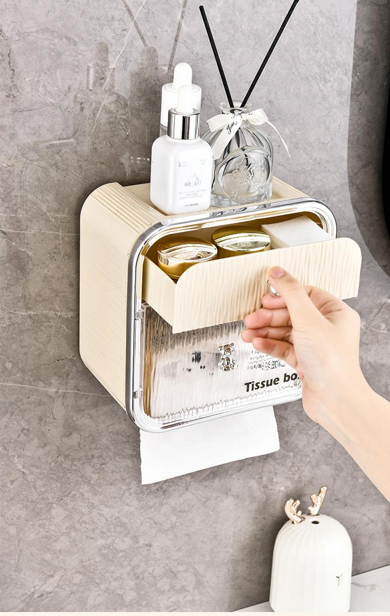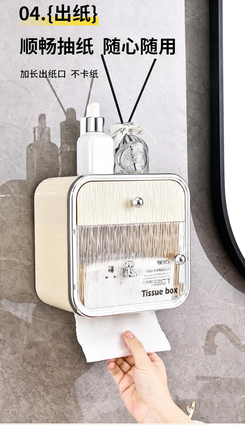 Caja de Pañuelos de Baño Montada en la Pared sin Perforaciones para el Hogar Baño Inodoro Pared Impermeable Soporte de Papel Almacenamiento Caja de Papel Higiénico