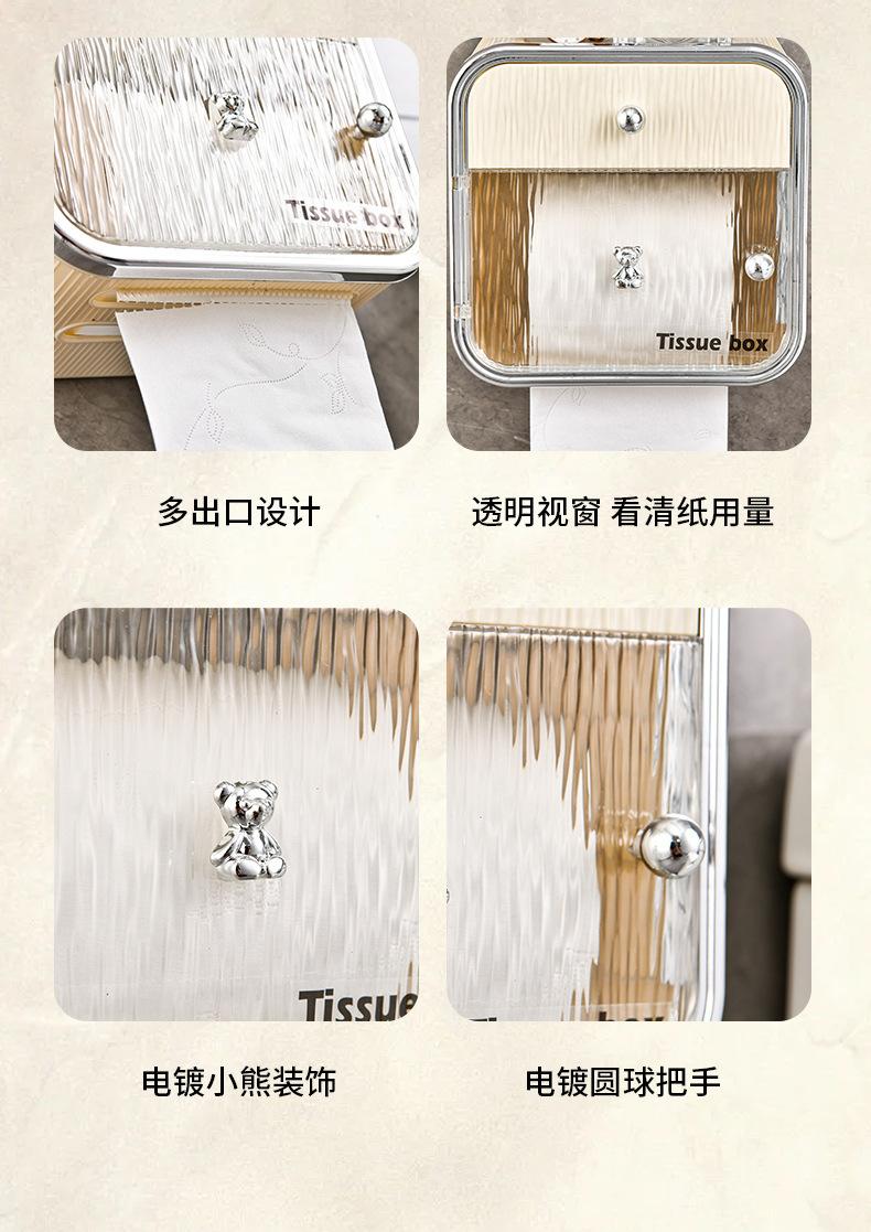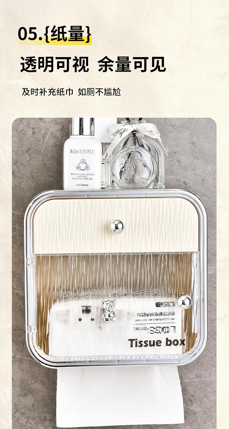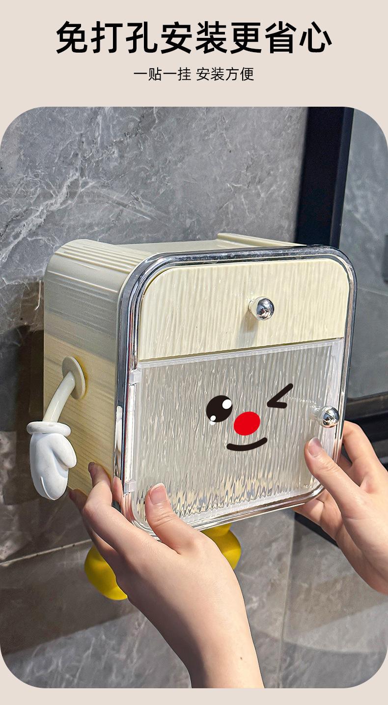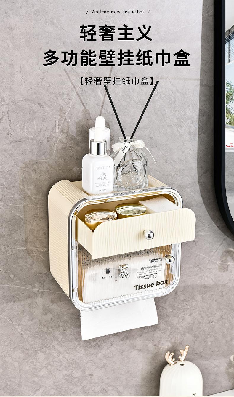 Caja de Pañuelos de Baño Montada en la Pared sin Perforaciones para el Hogar Baño Inodoro Pared Impermeable Soporte de Papel Almacenamiento Caja de Papel Higiénico