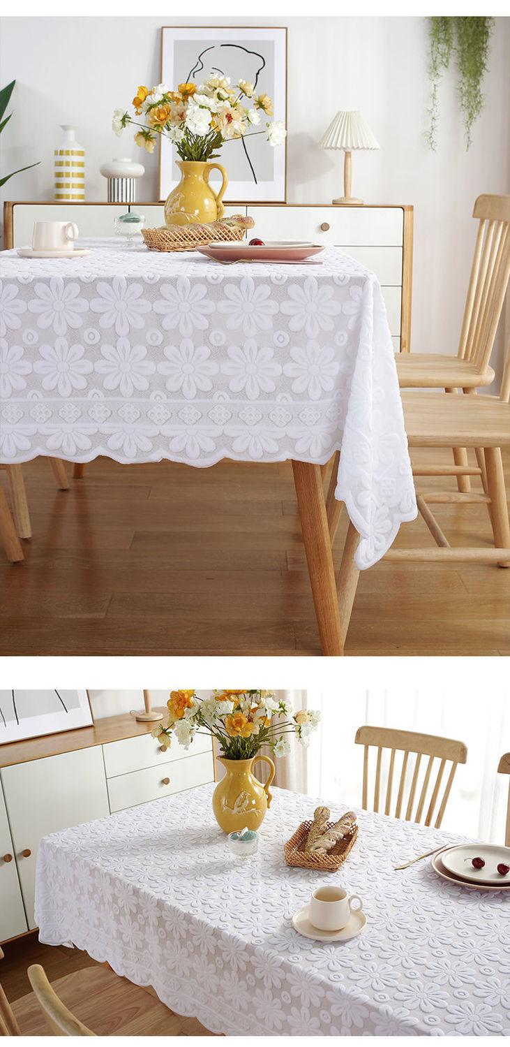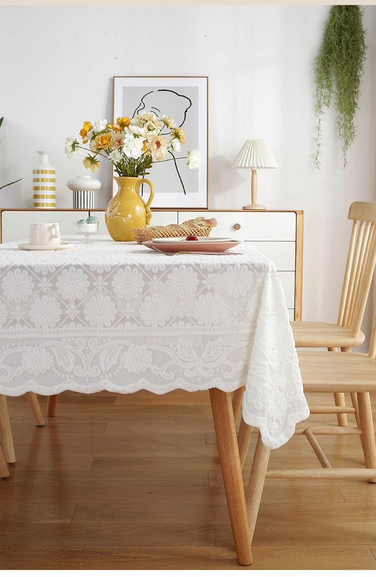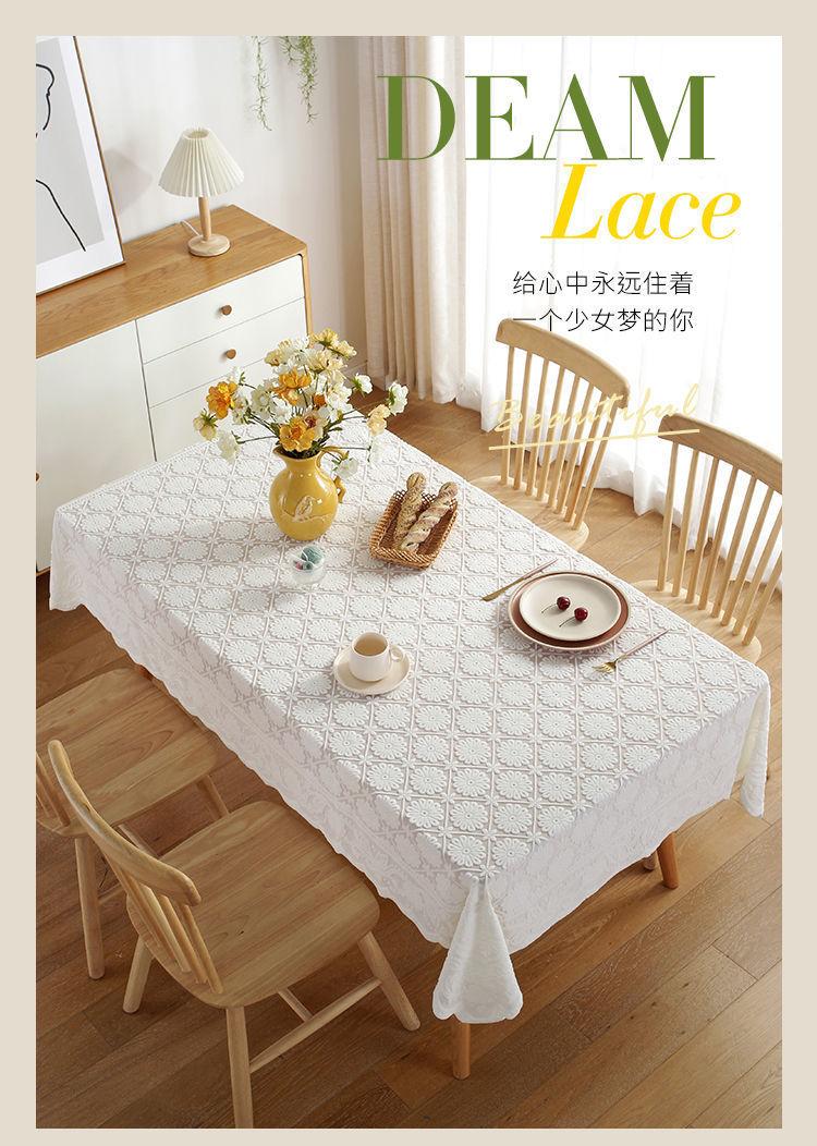 Mantel de Mesa de Centro Blanco Encaje Mantel de Comedor Rectangular Tela Mantel Estilo Europeo Pequeño Fresco Mantel Cubre Mesa para el Hogar