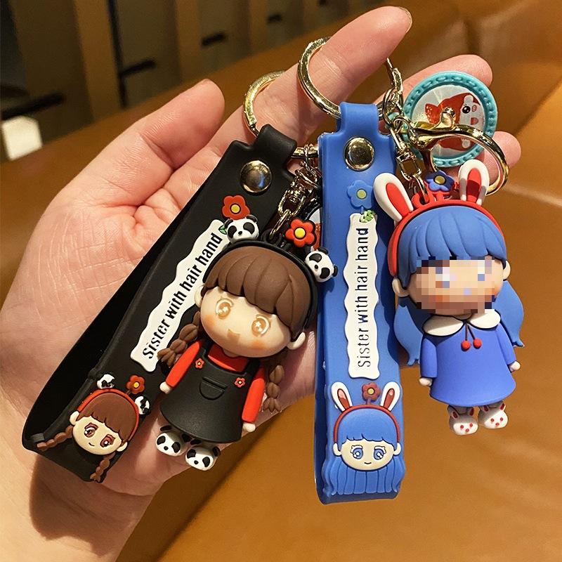 Diadema linda de alta gama llavero de niña caricatura tridimensional creativo hombres y mujeres llavero para llave de coche exquisito colgante para bolso