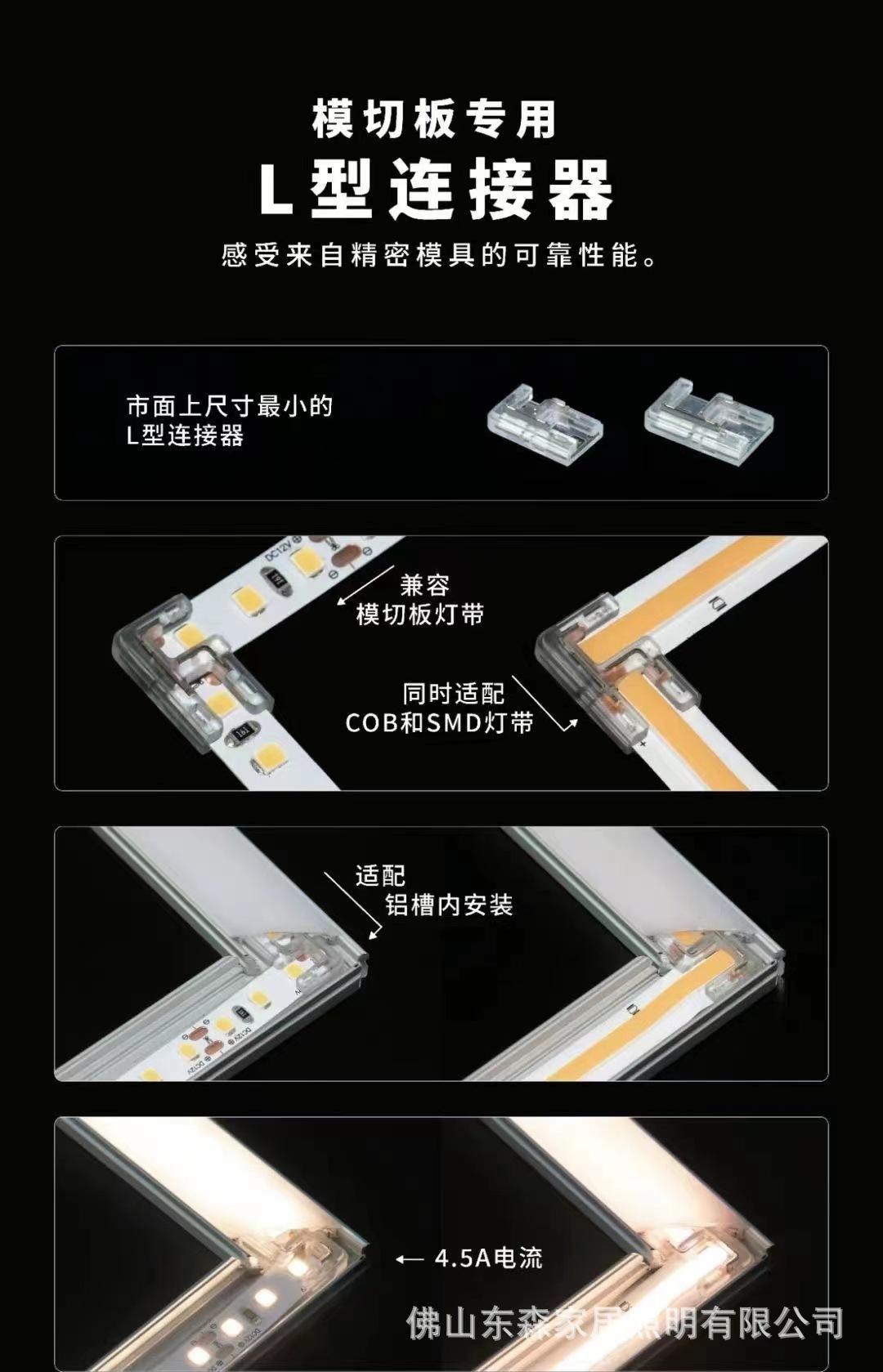 Conector sin soldadura para tira LED de 2 pines, bajo voltaje, conector de esquina Cob, línea de conexión con cabeza de cristal, especial para Cob