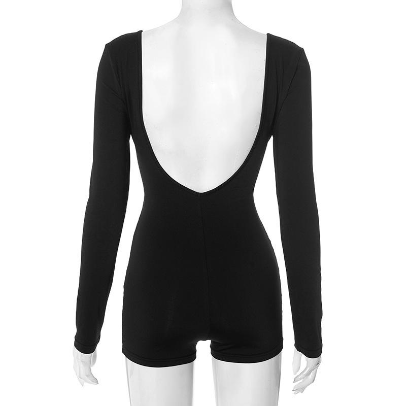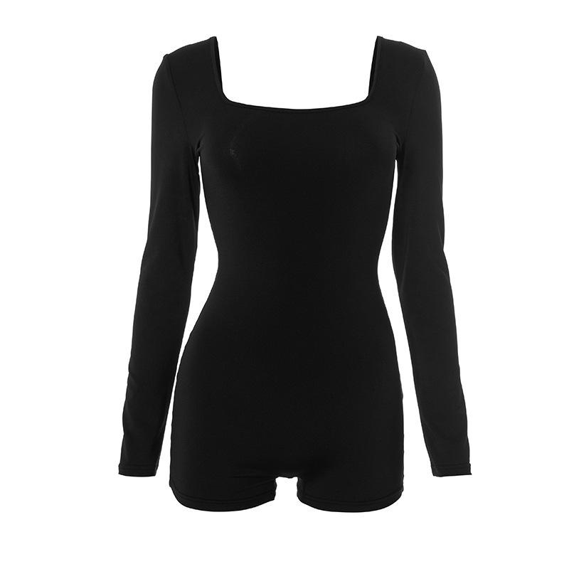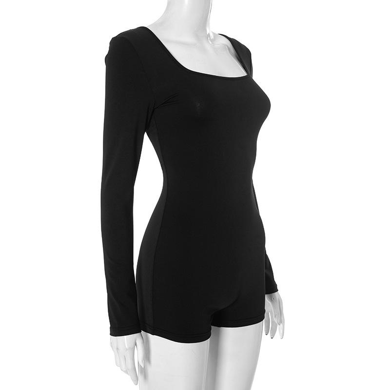 Europeo y Americano Transfronterizo Nuevo Otoño para Mujer Espalda Descubierta Color Sólido Cuello Cuadrado Adelgazante Manga Larga Mono Bodycon para Chica Caliente con Pantalón de Tres Puntos