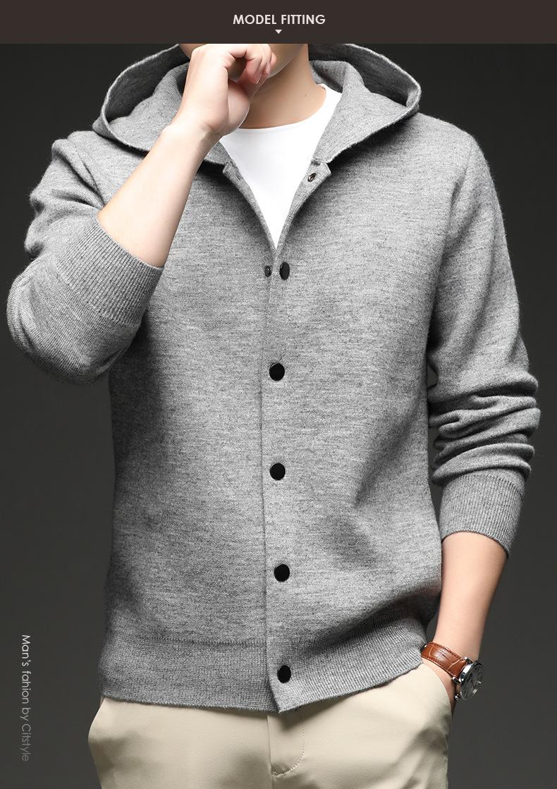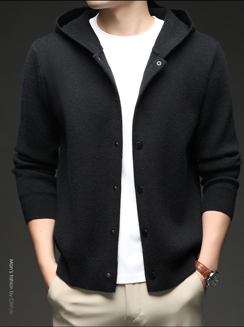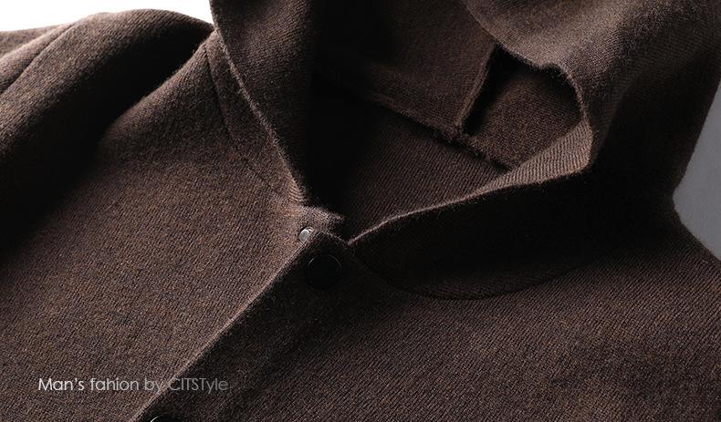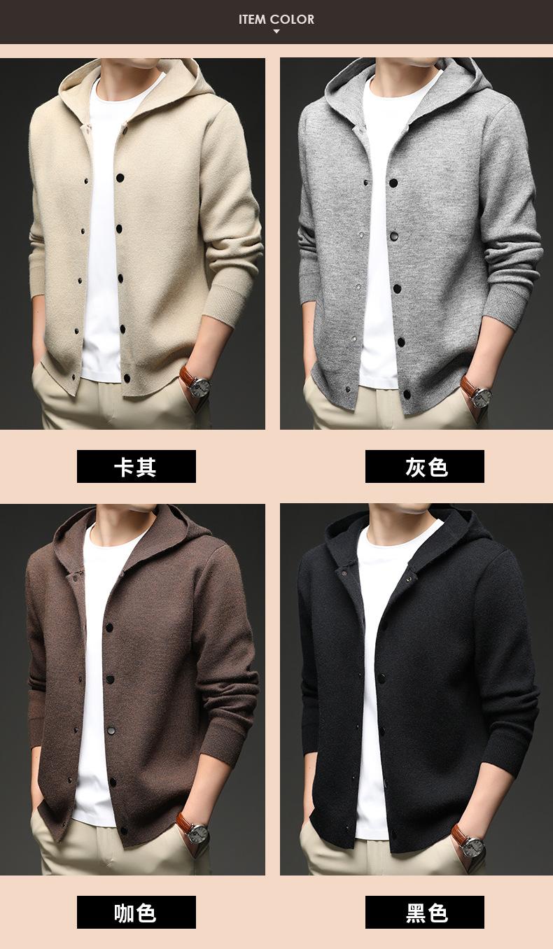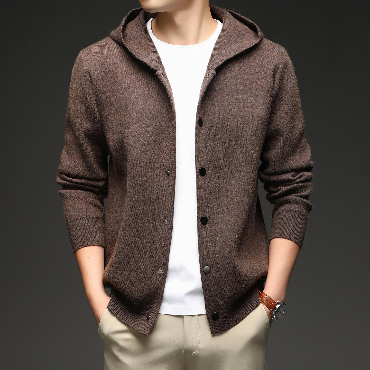 Suéter Cárdigan con Capucha de Comercio Exterior Yingao Otoño e Invierno Nuevo de Punto Trendy de un Solo Botón para Hombre Chaqueta Trendy