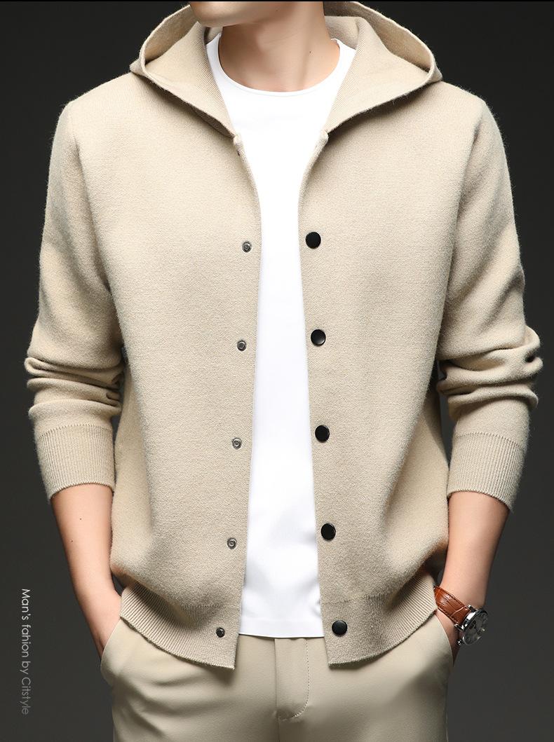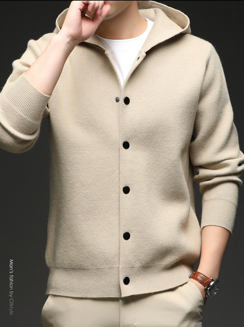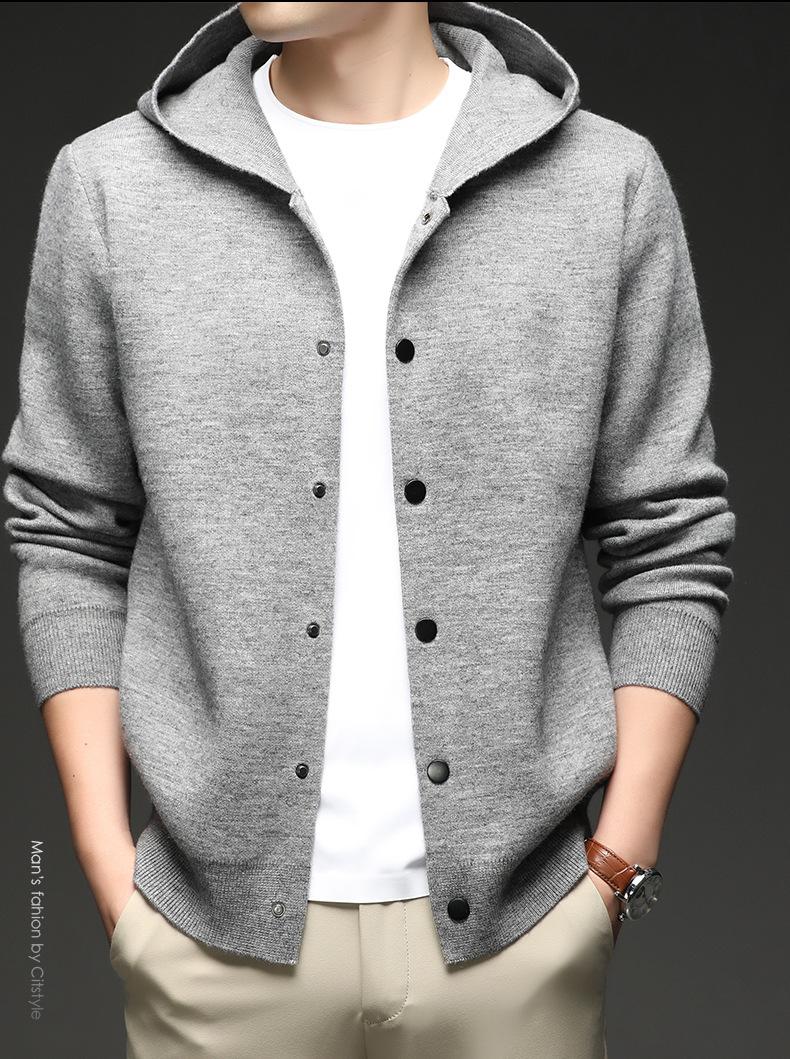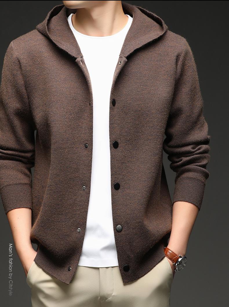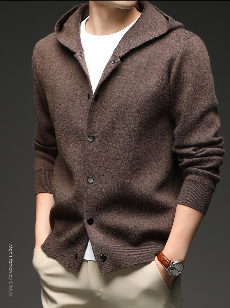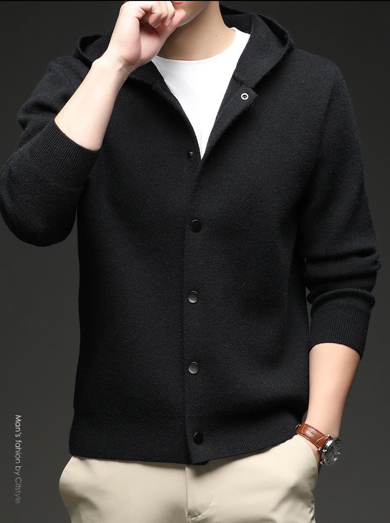 Suéter Cárdigan con Capucha de Comercio Exterior Yingao Otoño e Invierno Nuevo de Punto Trendy de un Solo Botón para Hombre Chaqueta Trendy