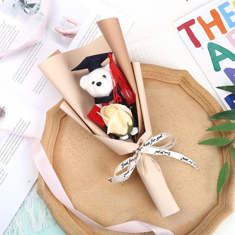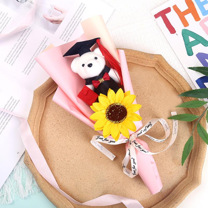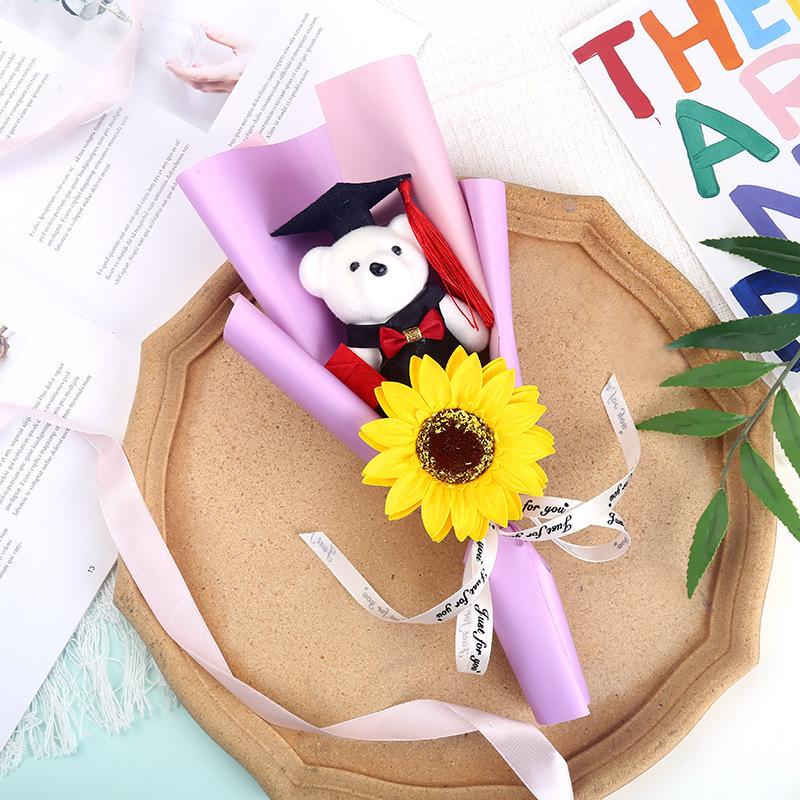 Graduación Dibujo Animado Oso Doctor Ramo de Rosas Girasoles Amante Madre Día del Maestro Regalo Creativo Acompañamiento Ceremonia