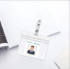 En stock Amazon superventas tarjetero doble orificio tarjetero para identificación tarjetero para gafete plástico PVC transparente horizontal impermeable tarjetero