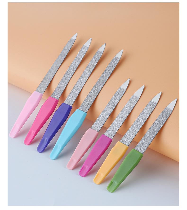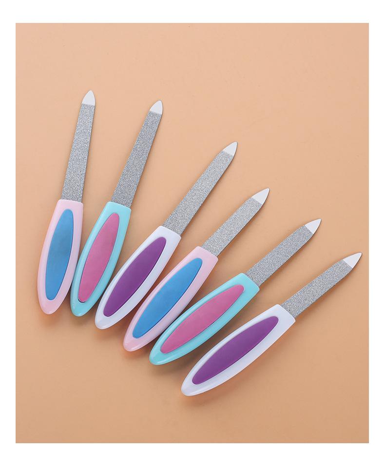 Lima de Uñas de Acero Inoxidable para el Hogar Doble Cara Pulido Mango de Plástico Tira de Pulido para Manicura Pulido de Uñas Manicura Herramienta de Manicura
