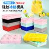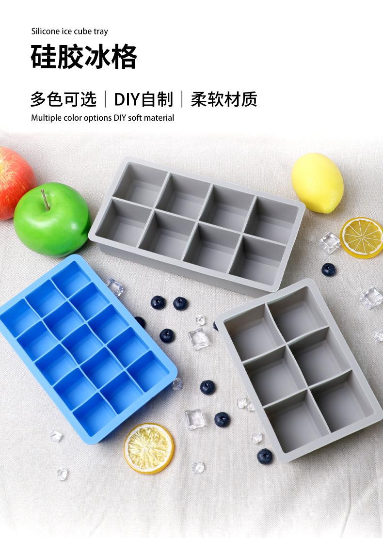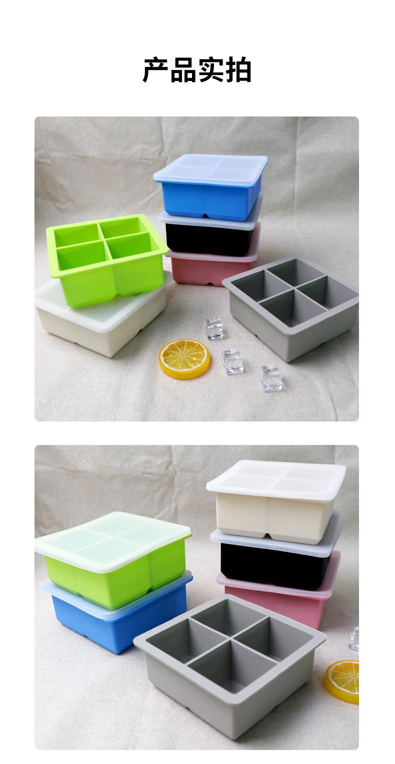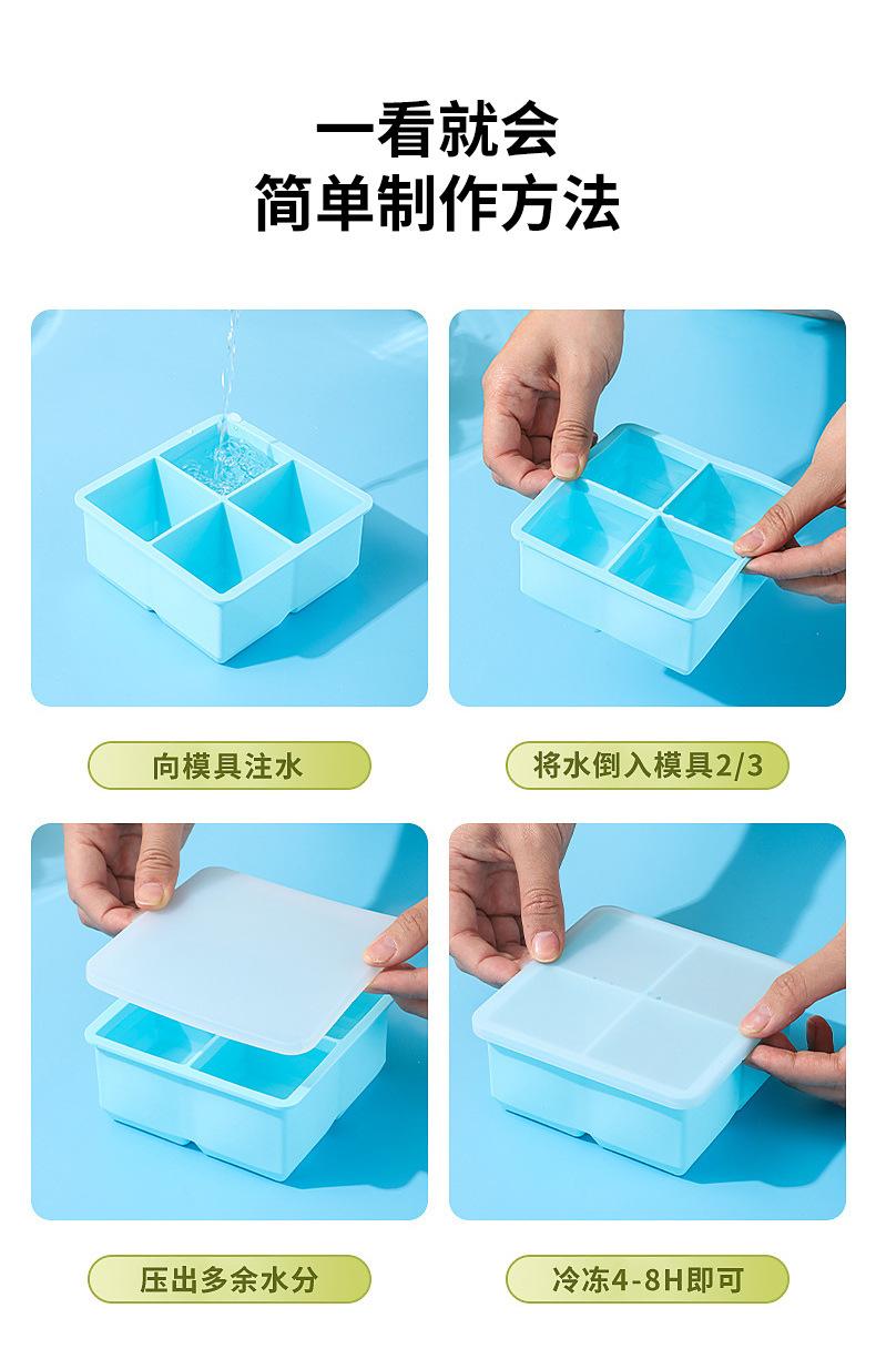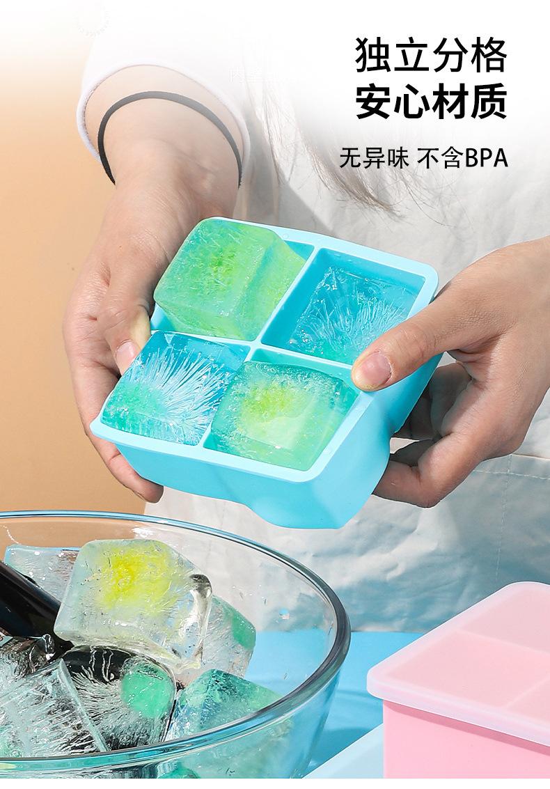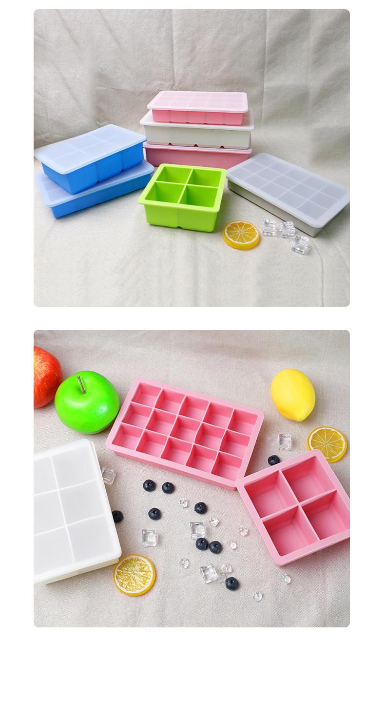 Blue 4-compartment square ice tray (with lid), Blue 4-compartment square ice tray (without lid), Pink 4-compar...