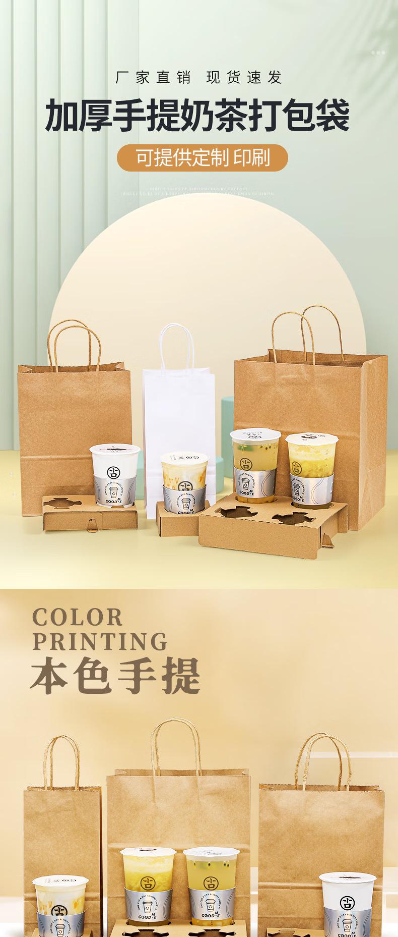 Bolsa de embalaje de papel Kraft al por mayor bolsa de embalaje para té con leche bolsa para llevar para hornear catering café bolsa de papel portátil logotipo imprimible
