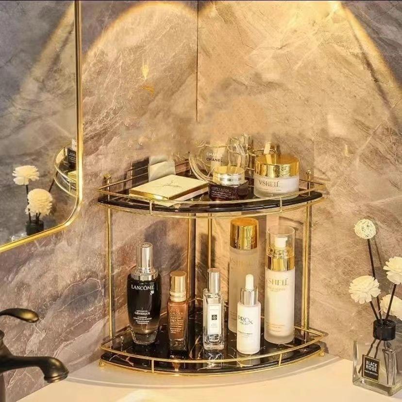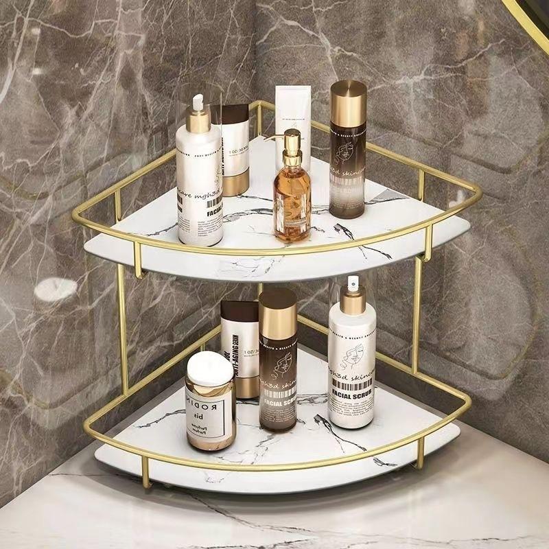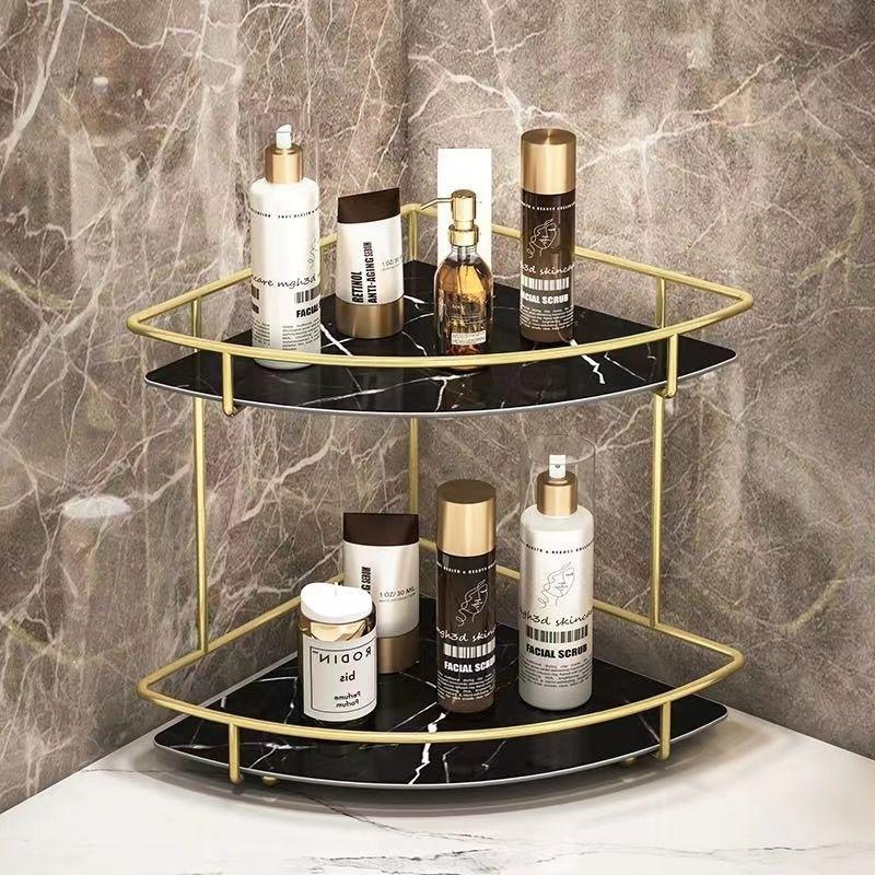 Estante de Almacenamiento de Cosméticos de Lujo Ligero Almacenamiento para Lavabo Baño de Doble Capa de Pie Triángulo Caja de Almacenamiento para Esquina de Baño