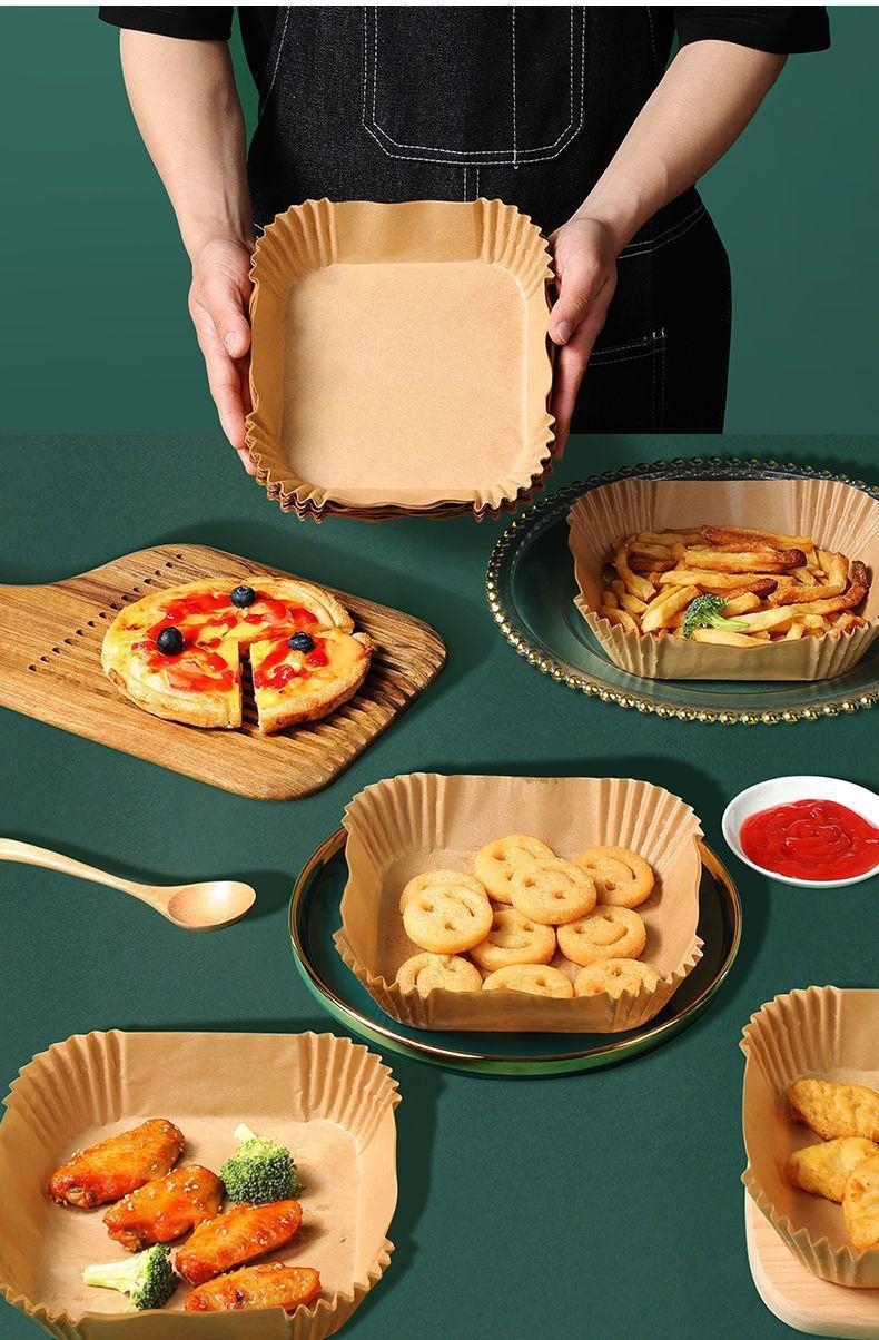 Plato de Papel Especial para Freidora de Aire Desechable Papel Absorbente de Aceite Engrosado para Horno Horneado Resistente a Altas Temperaturas Grado Alimenticio Papel para Alimentos