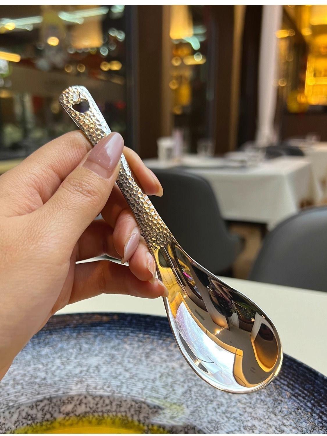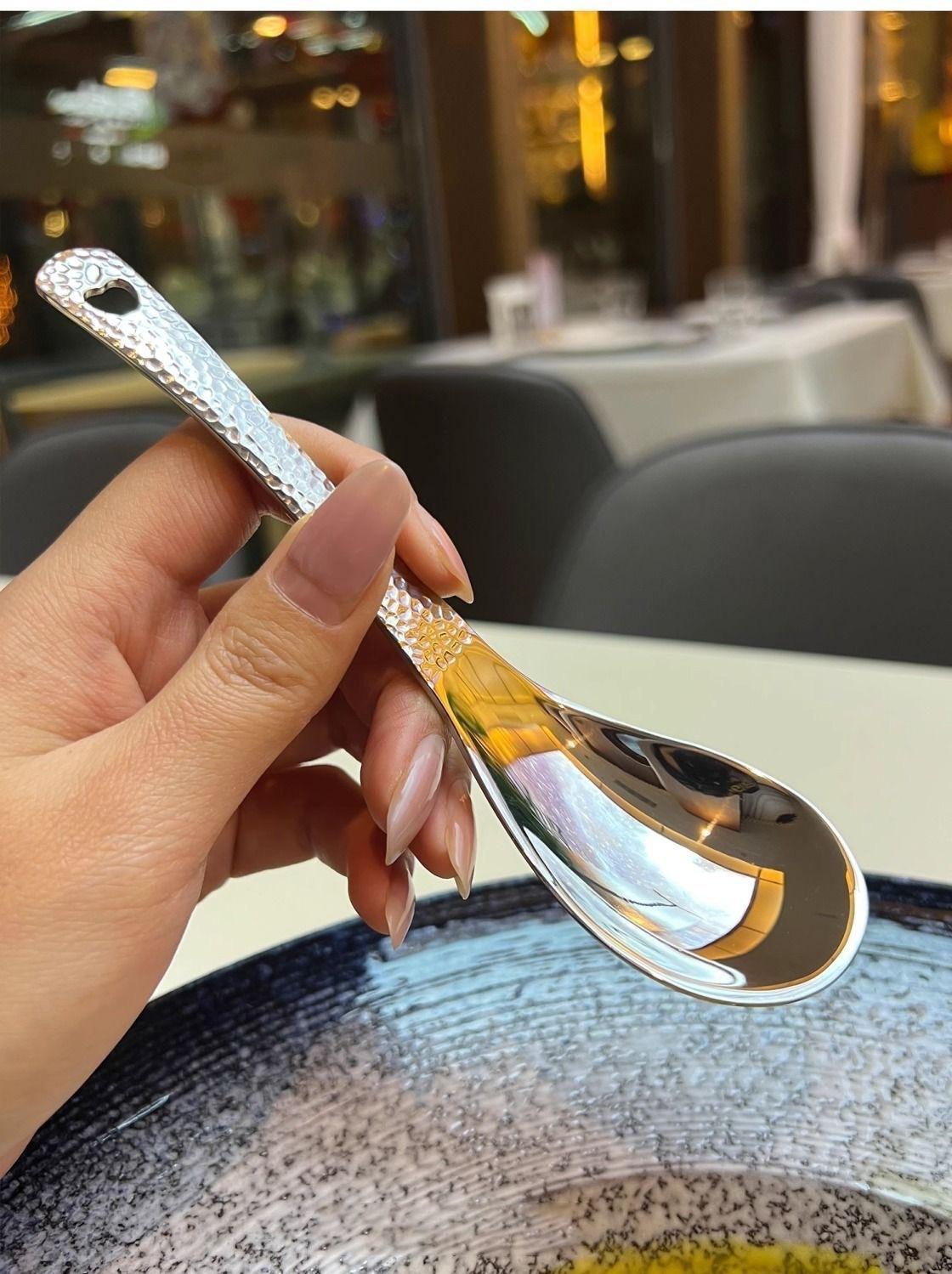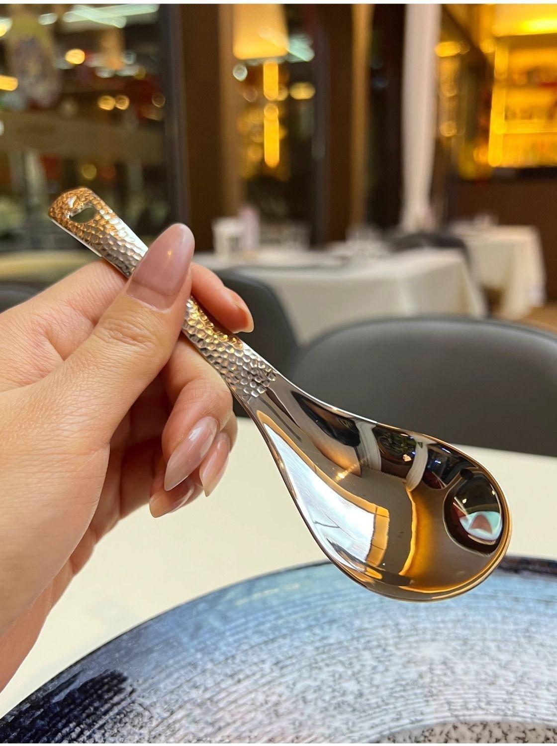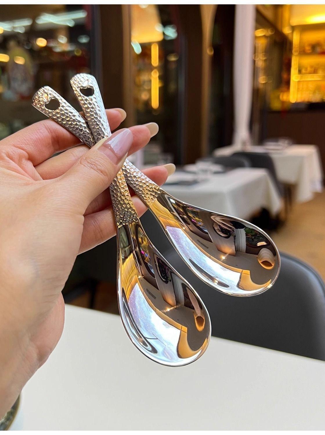 Compra Cuchara Vintage de Acero Inoxidable Alto Valor de Color Cuchara para Arroz Patrón Martillado con Agujeros Cuchara de Palacio Cuchara para Postre de Restaurante Cuchara para Sopa Casera al por mayor en Joom.pro