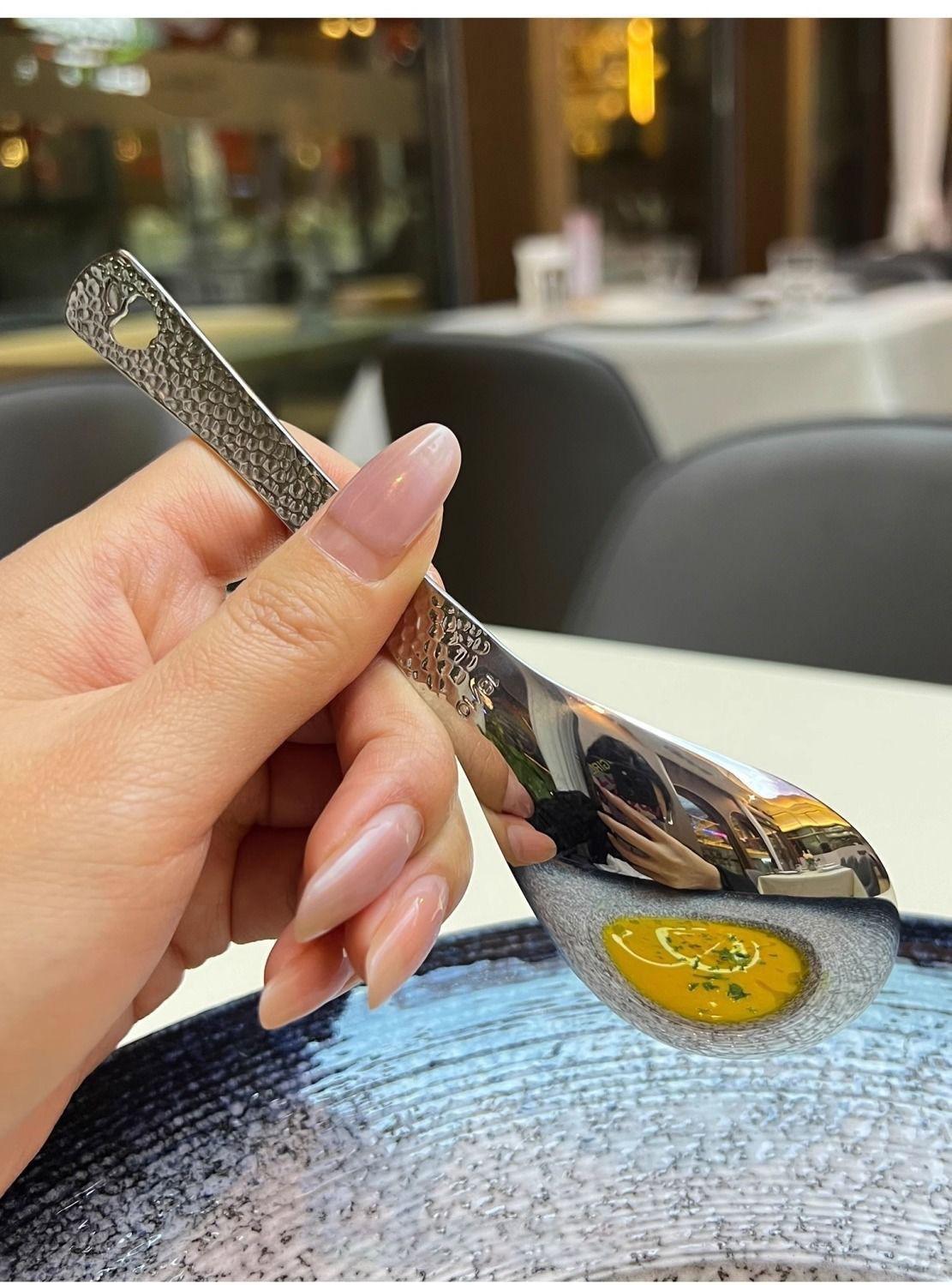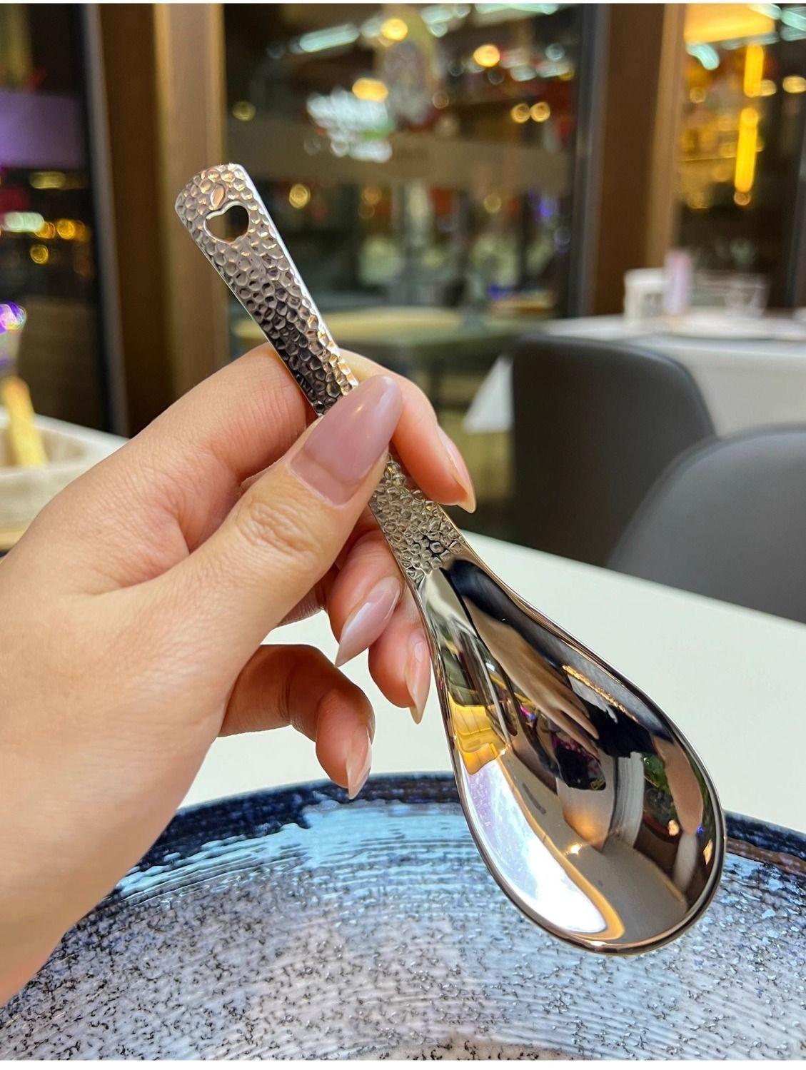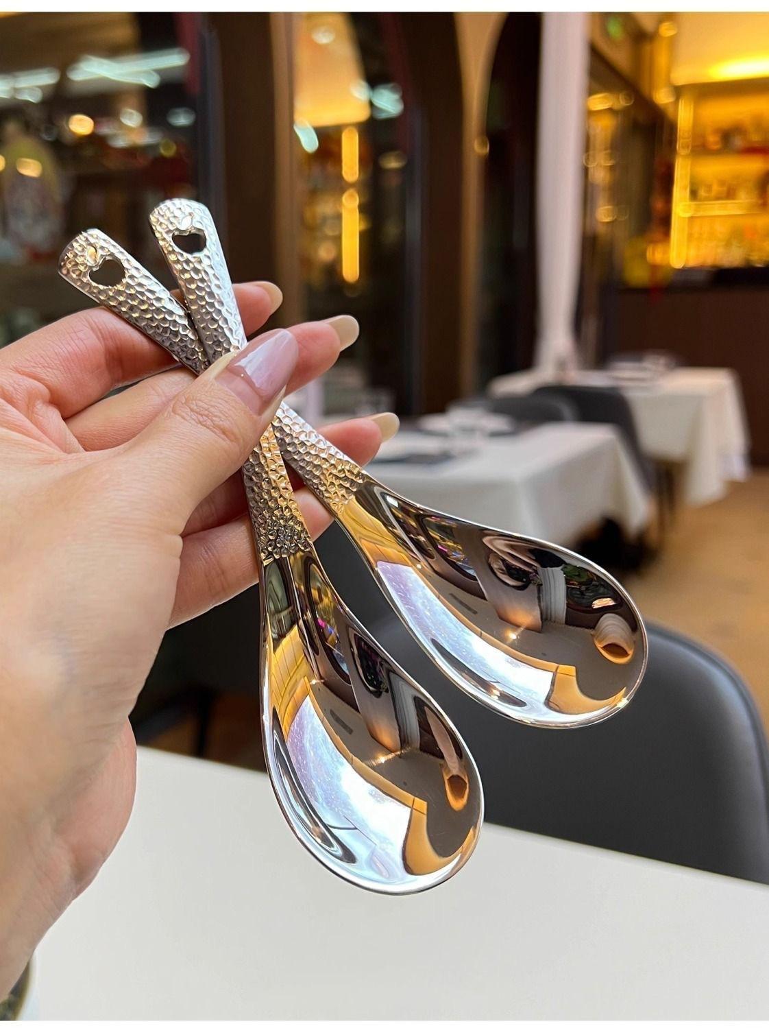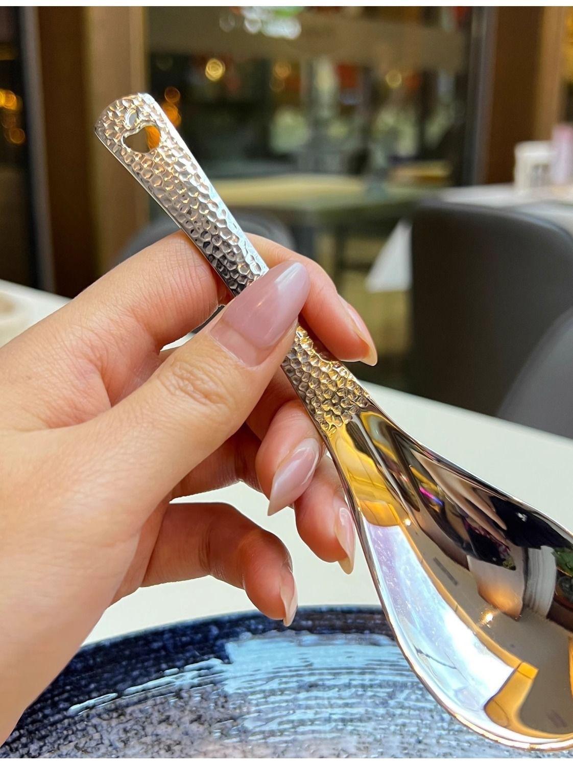 Compra Cuchara Vintage de Acero Inoxidable Alto Valor de Color Cuchara para Arroz Patrón Martillado con Agujeros Cuchara de Palacio Cuchara para Postre de Restaurante Cuchara para Sopa Casera al por mayor en Joom.pro