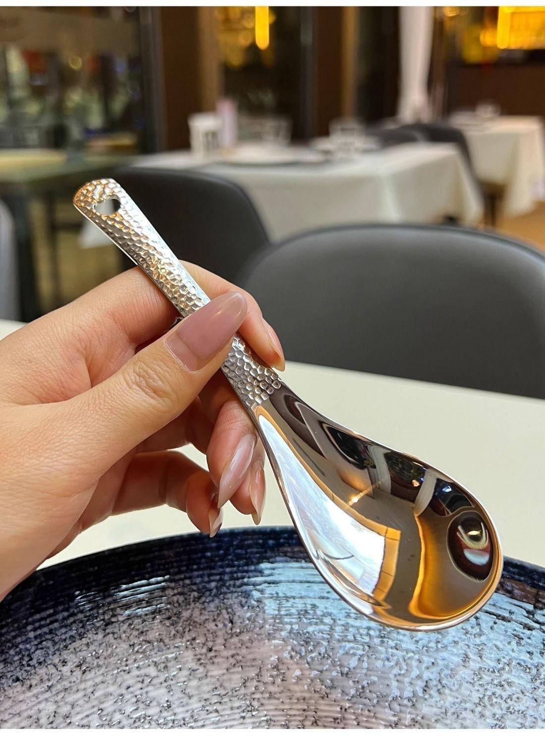 Cuchara Vintage de Acero Inoxidable Alto Valor de Color Cuchara para Arroz Patrón Martillado con Agujeros Cuchara de Palacio Cuchara para Postre de Restaurante Cuchara para Sopa Casera