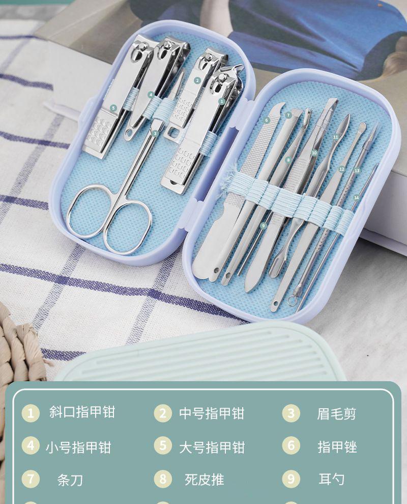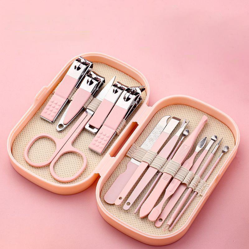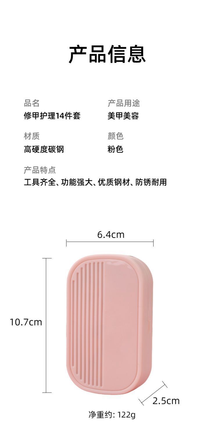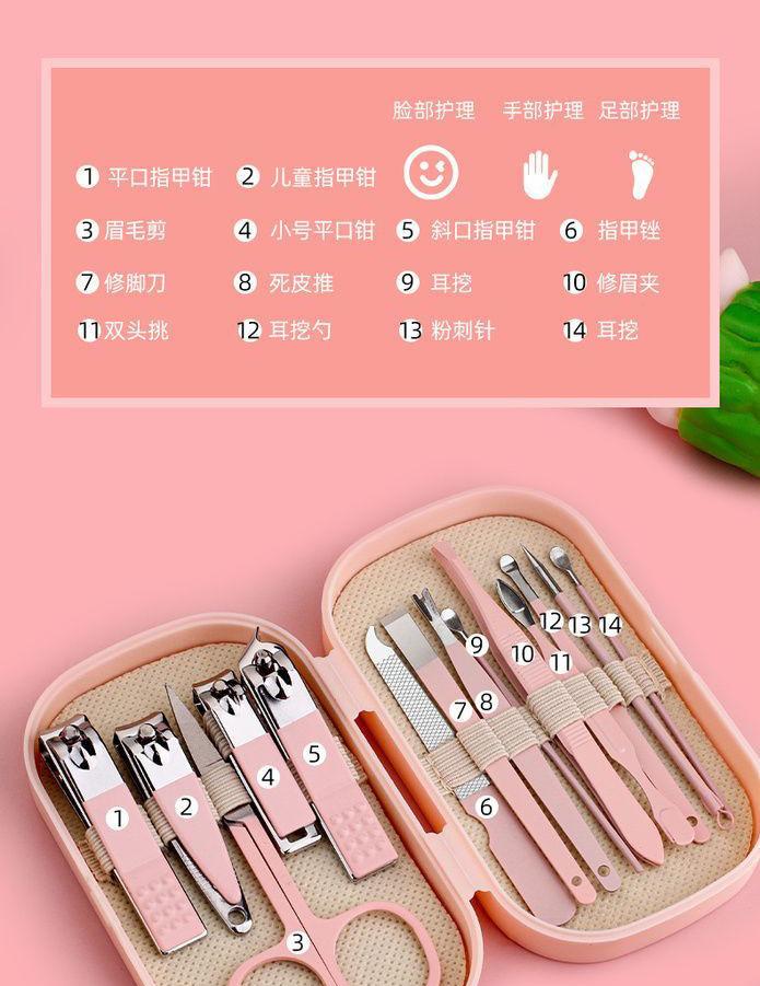 Set de Cortauñas Color Caramelo Manicura Set de Cortauñas Juego Completo de Herramientas Cortauñas de Uñas y Oídos Set de 14 Piezas