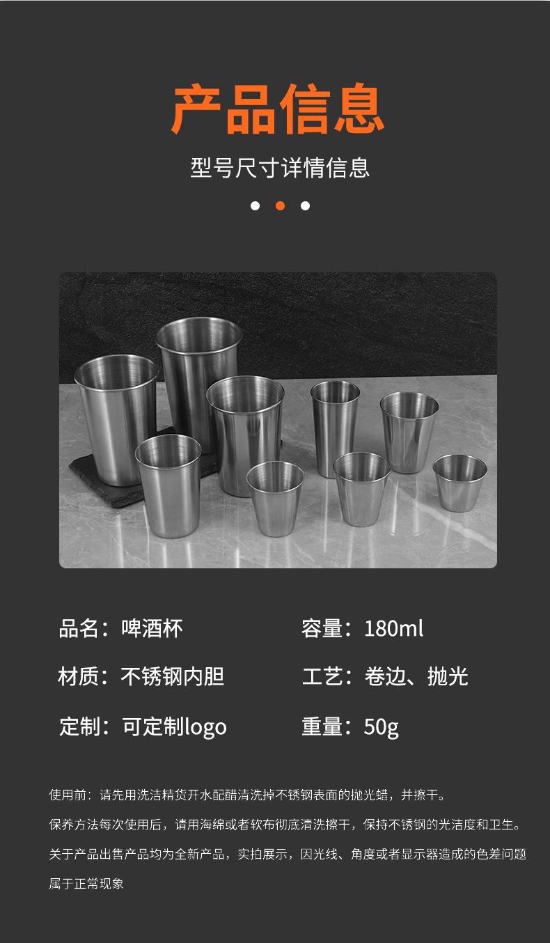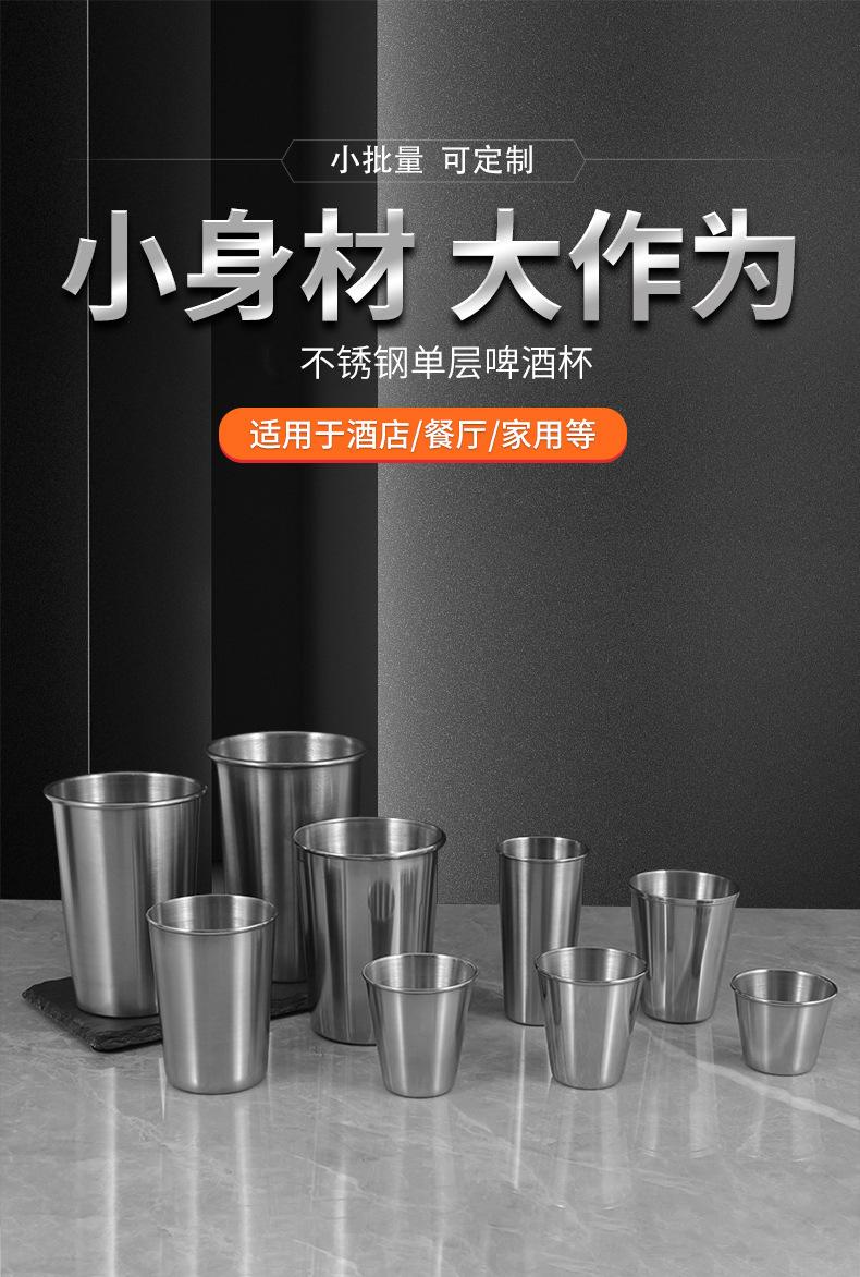 Vaso de agua de acero inoxidable de fábrica de una sola capa vaso de cerveza vaso para bebida fría vaso para enjuague bucal vaso para jugo taza de té de restaurante vaso de agua logo grabado