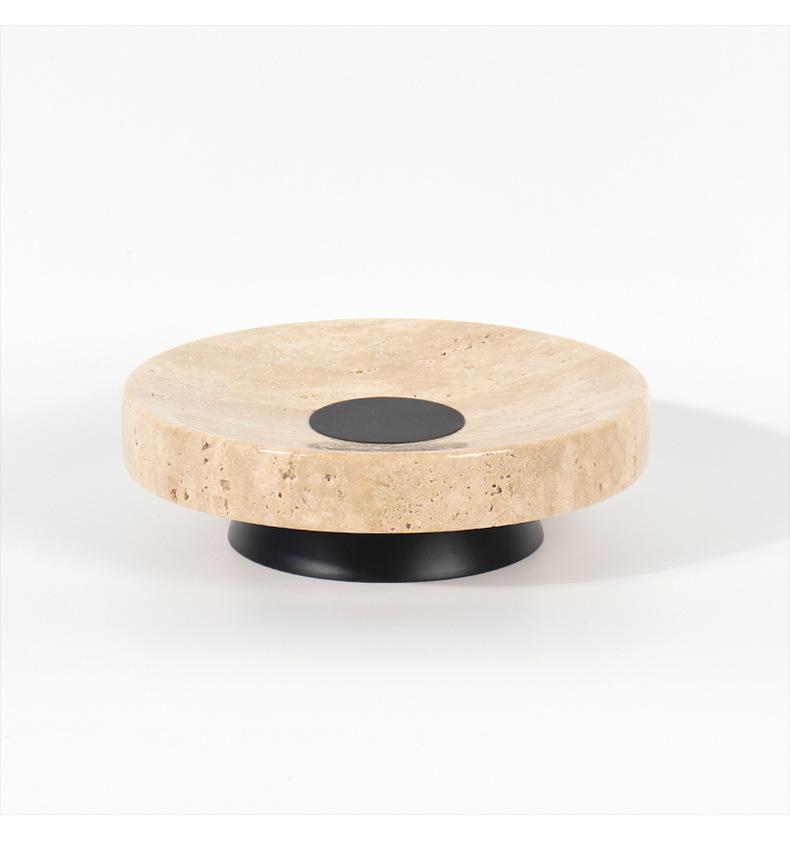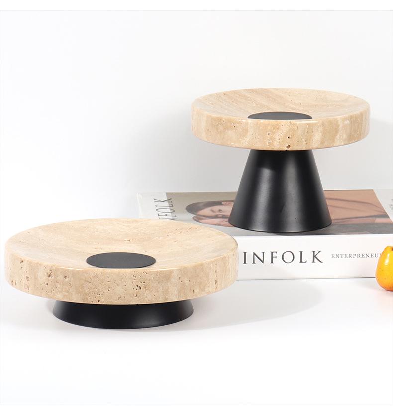 Plato de fruta redondo de piedra de cueva amarilla minimalista moderno, creativo para el hogar, sala de estar, mueble de TV, mesa de centro, bandeja de exhibición para almacenamiento de escritorio