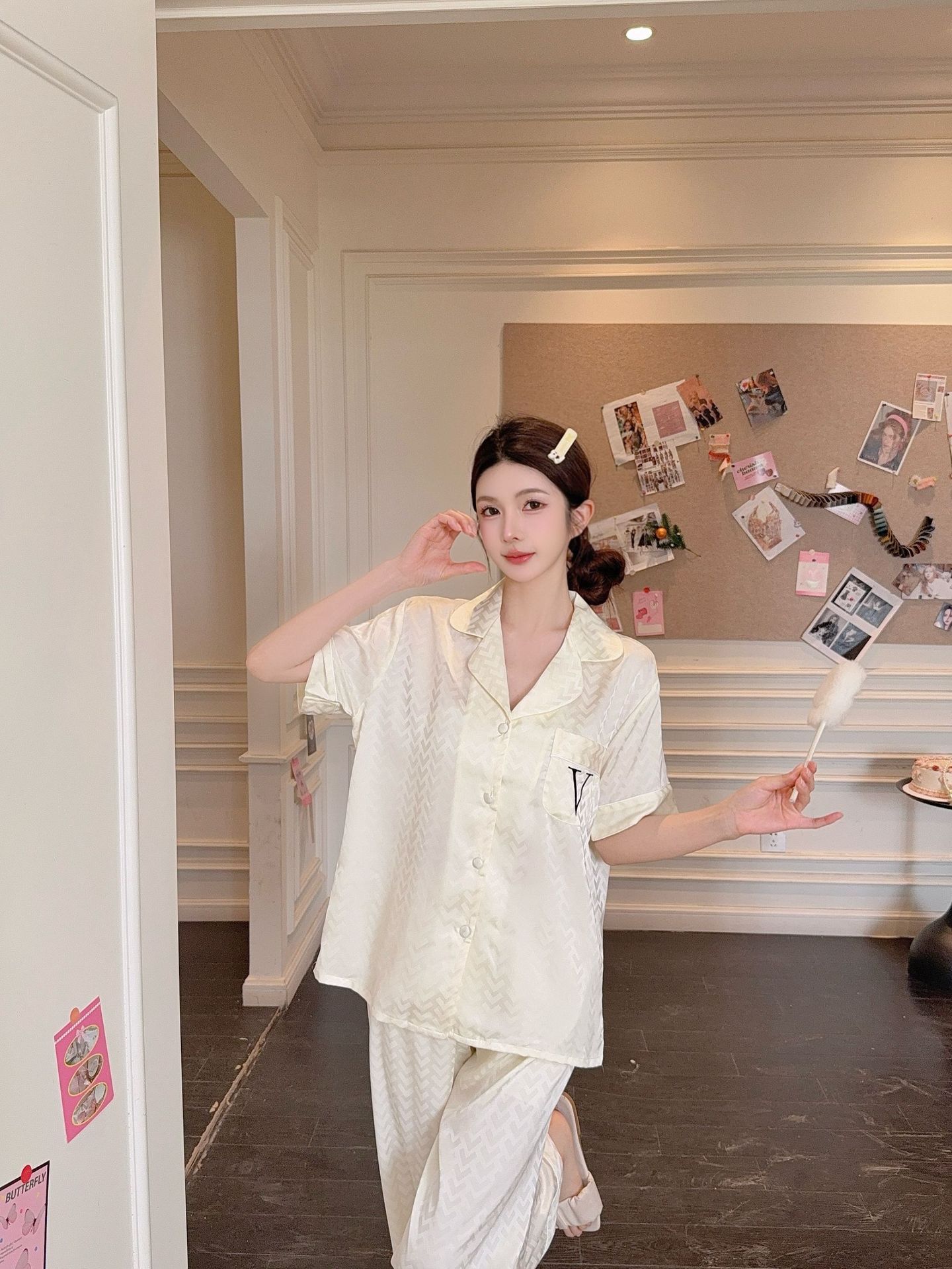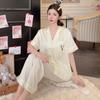 Verano Nuevo Pantalones de Manga Corta Pijama para Mujer Seda de Hielo Traje de Niña Dulce Ropa para el Hogar Pijama de Seda Francesa Imitación