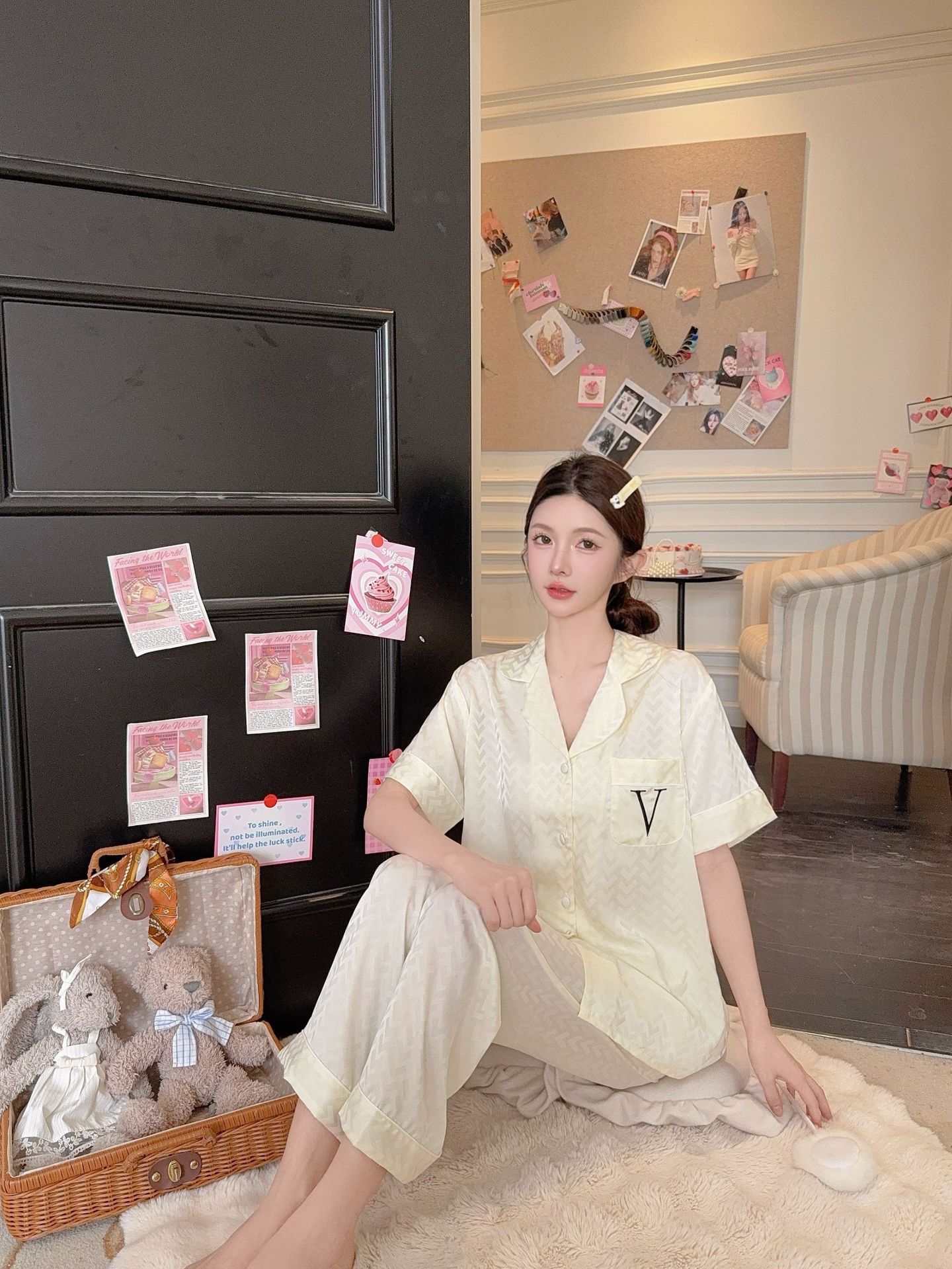 Compra Verano Nuevo Pantalones de Manga Corta Pijama para Mujer Seda de Hielo Traje de Niña Dulce Ropa para el Hogar Pijama de Seda Francesa Imitación al por mayor en Joom.pro