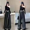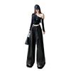 Pantalones de pierna ancha de alta gama transfronterizos 2025 nueva moda pañuelo de seda talle alto sueltos adelgazantes casuales pantalones largos