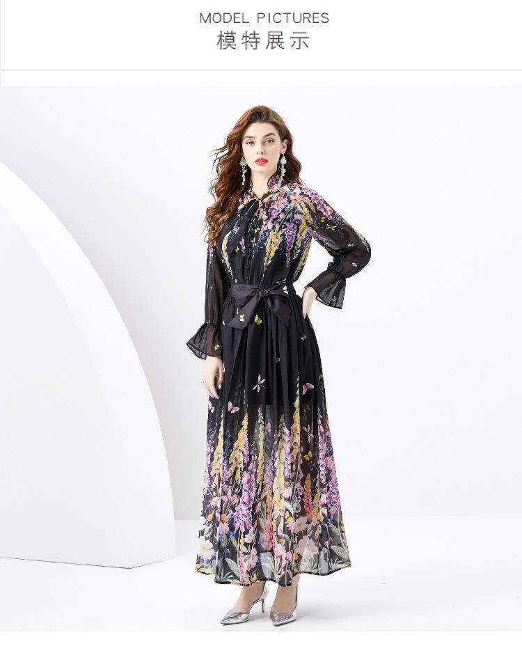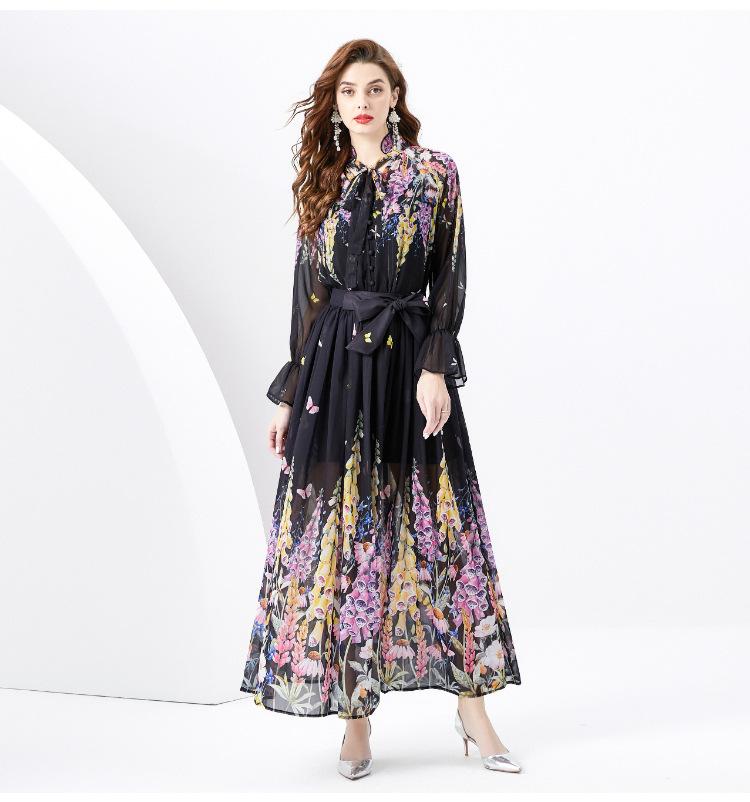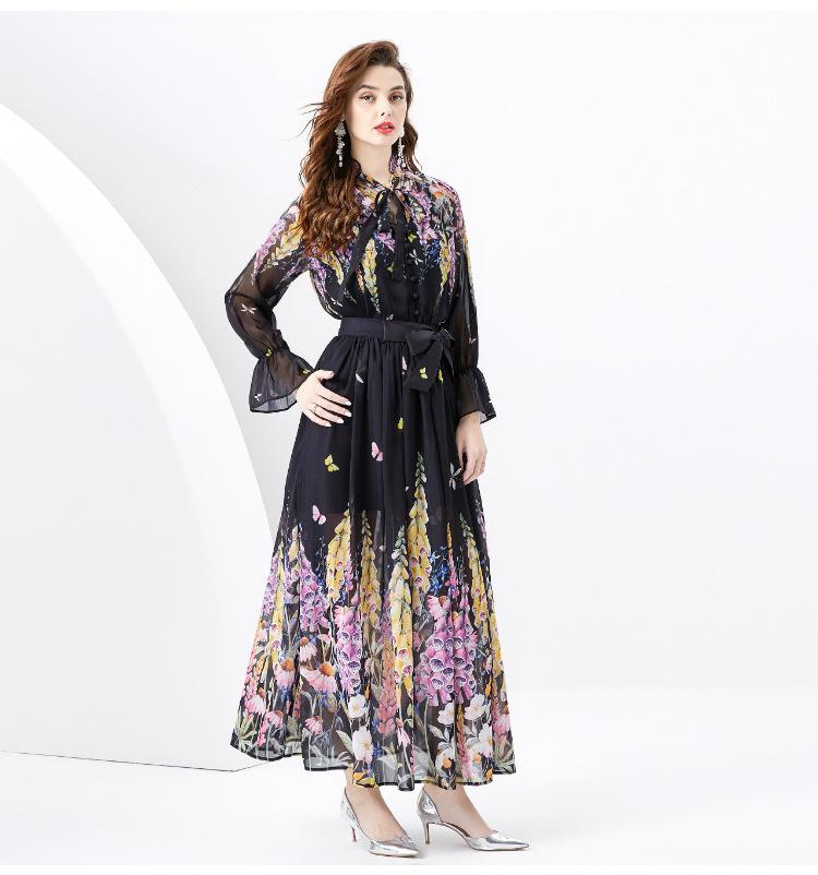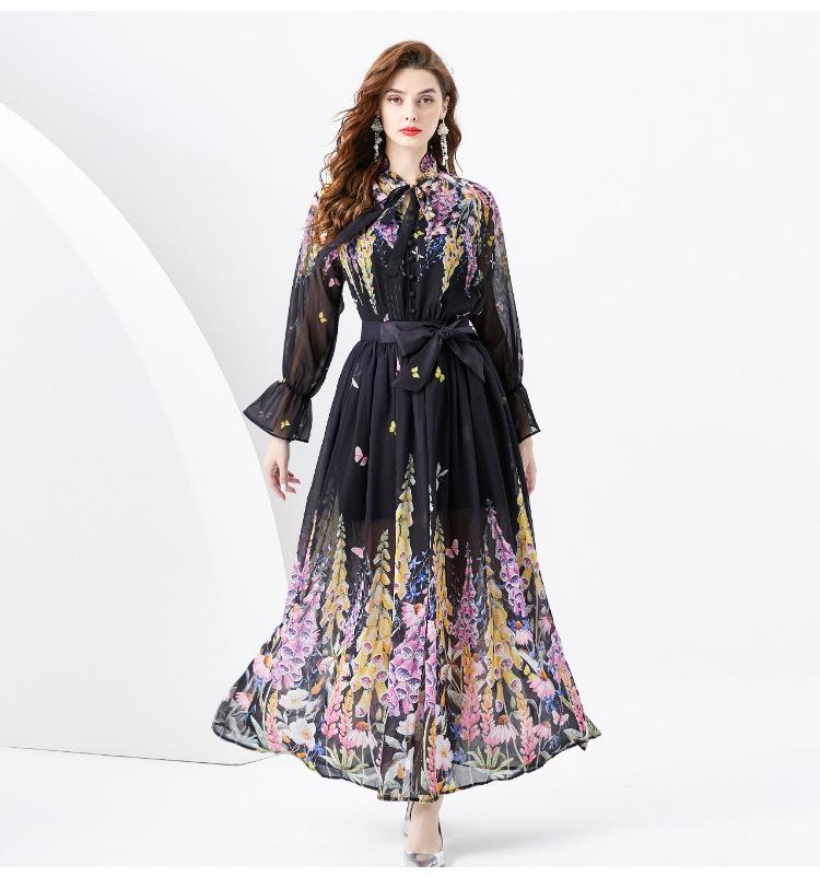 Compra Vestido Acampanado Entallado a la Cintura Estilo Europeo y Americano para Ir al Trabajo, Vestido con Estampado Retro para Vacaciones de Primavera y Verano al por mayor en Joom.pro