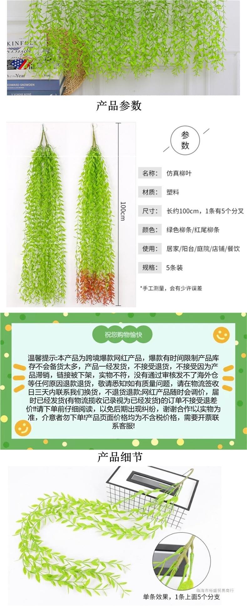 Flor Artificial Planta Verde Hierba de Agua Enredadera Sala de Estar Colgante Pared Decoración de Pared Planta Plástico Ratán Mimbre Hoja de Sauce