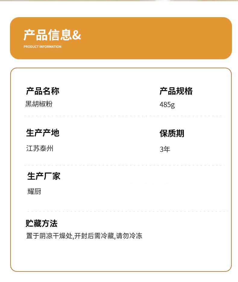 Yaochu 485g Polvo de Pimienta Negra Embotellado Condimento para Bistec Espagueti Cocina Catering Especias Pimienta