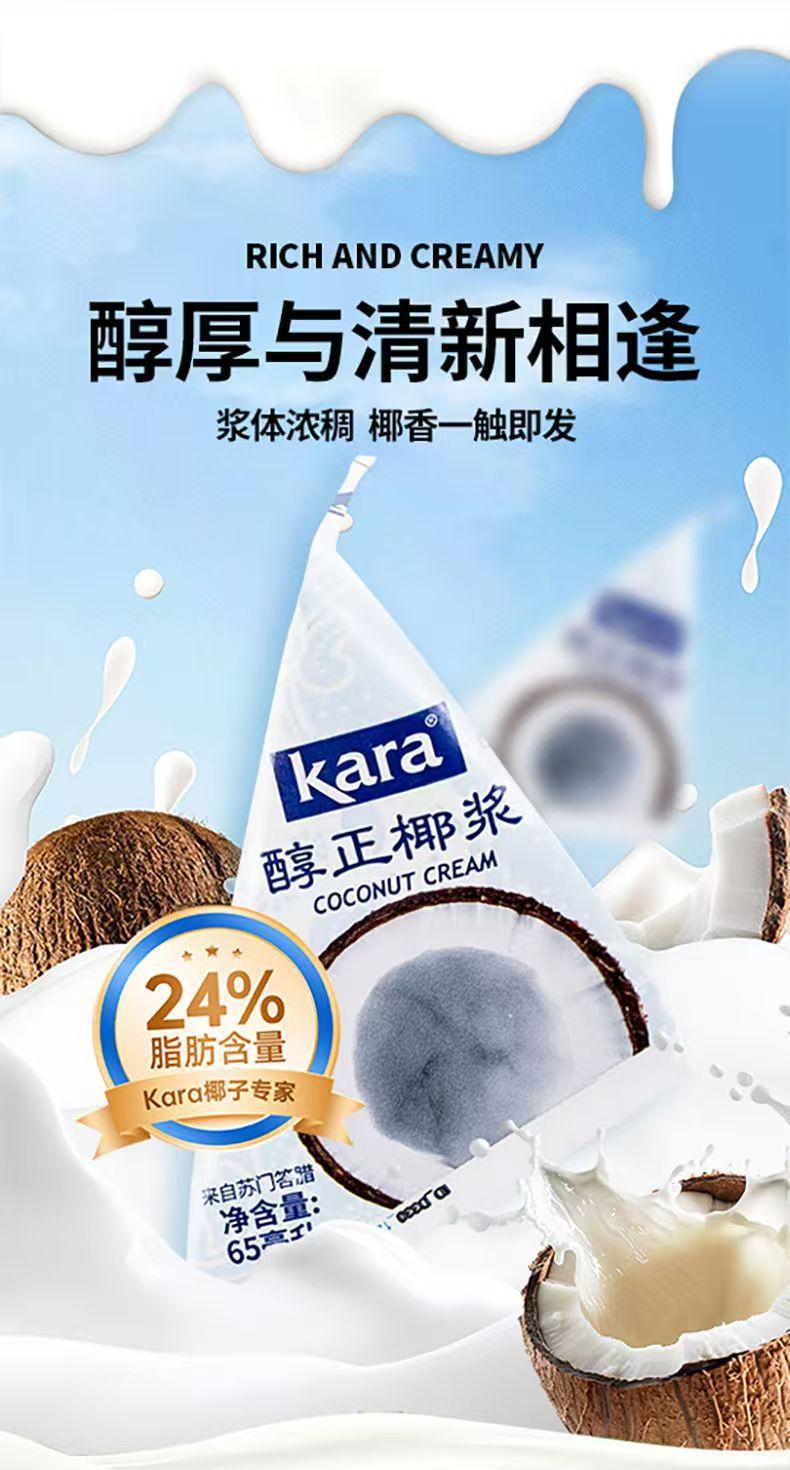 Importación Indonesia Kara Kara Crema de Coco Pura Materia Prima Leche de Coco Té Postre Horneado Especial Pequeño Empaque 65ml*6