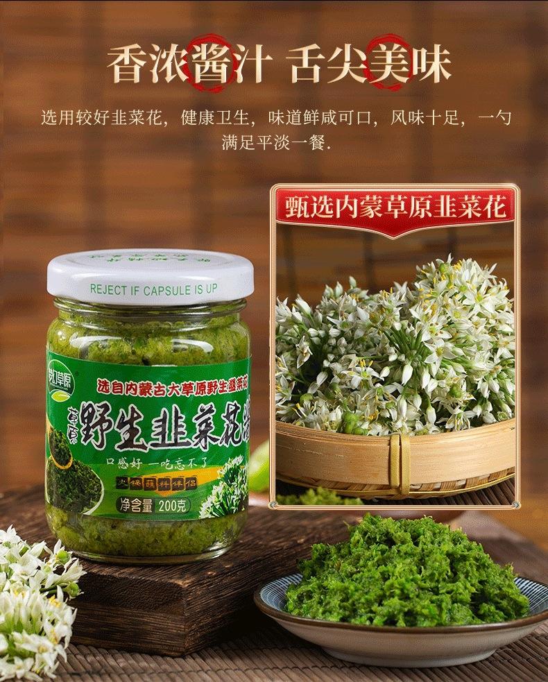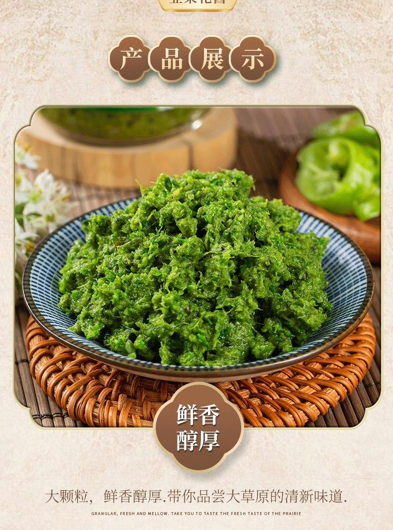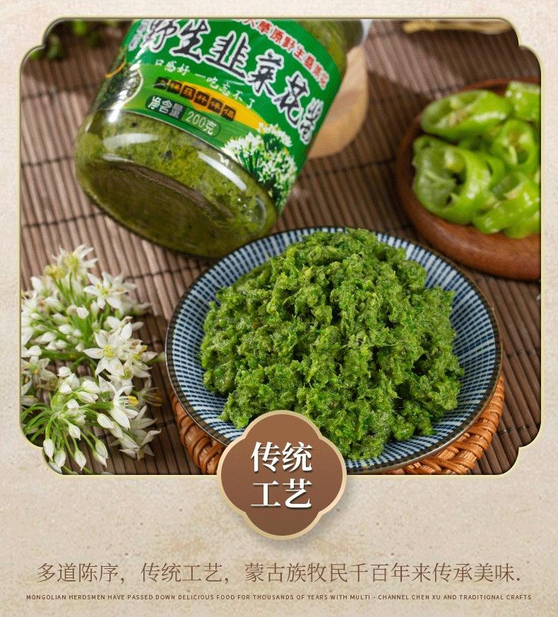 Salsa de Flor de Cebollino Silvestre en la Punta de la Lengua, Salsa Casera para Inmersión de Olla Caliente de Granja de la Pradera de Mongolia Interior