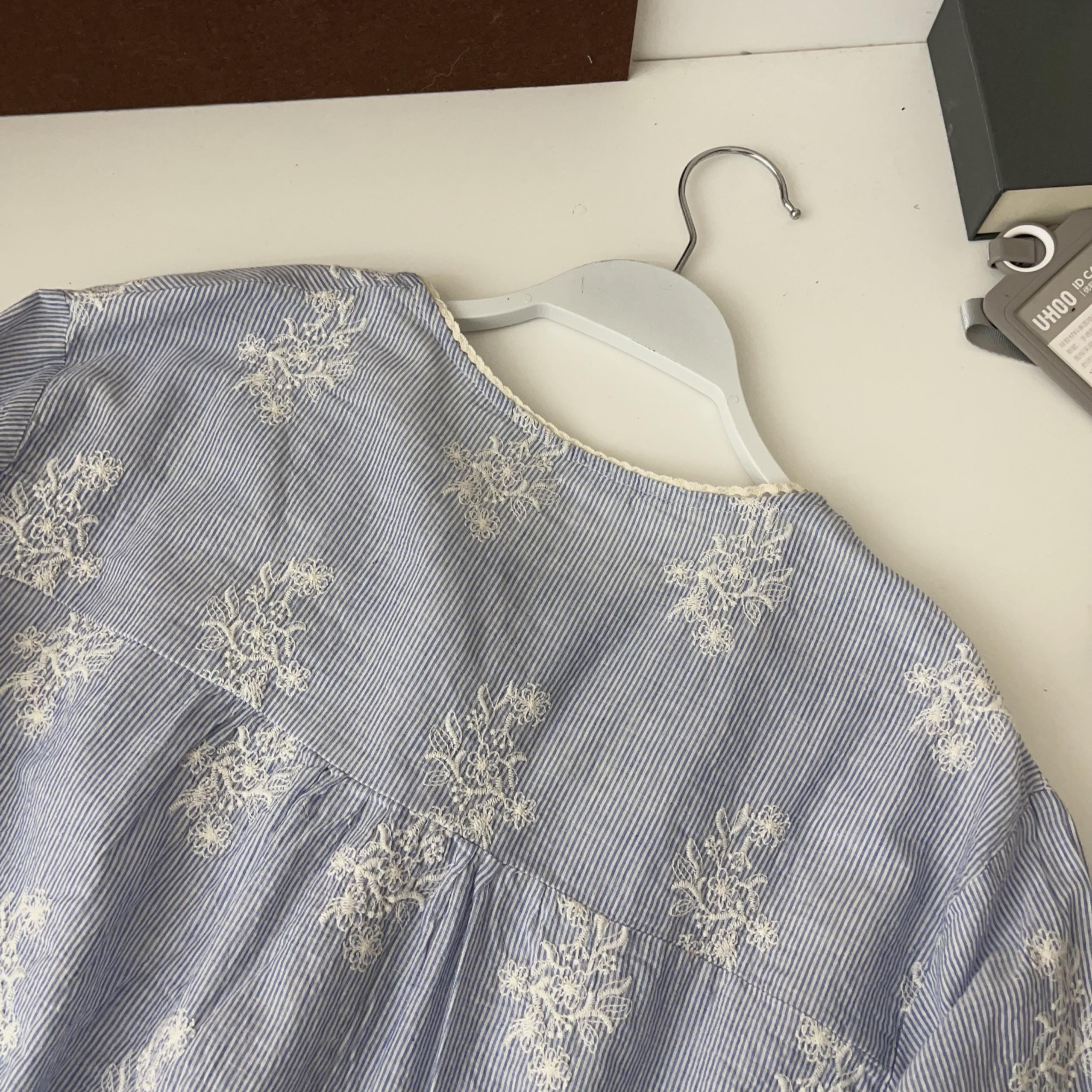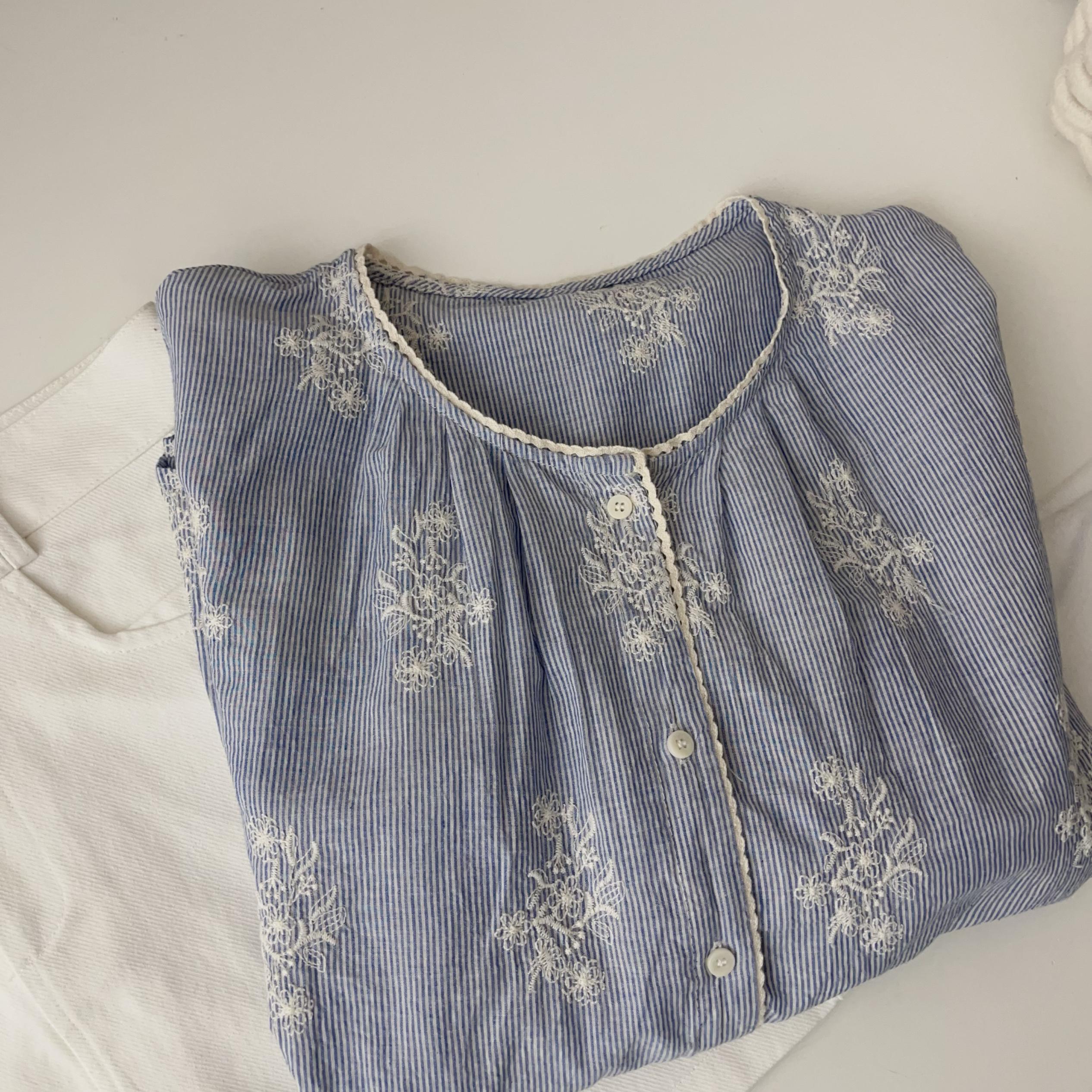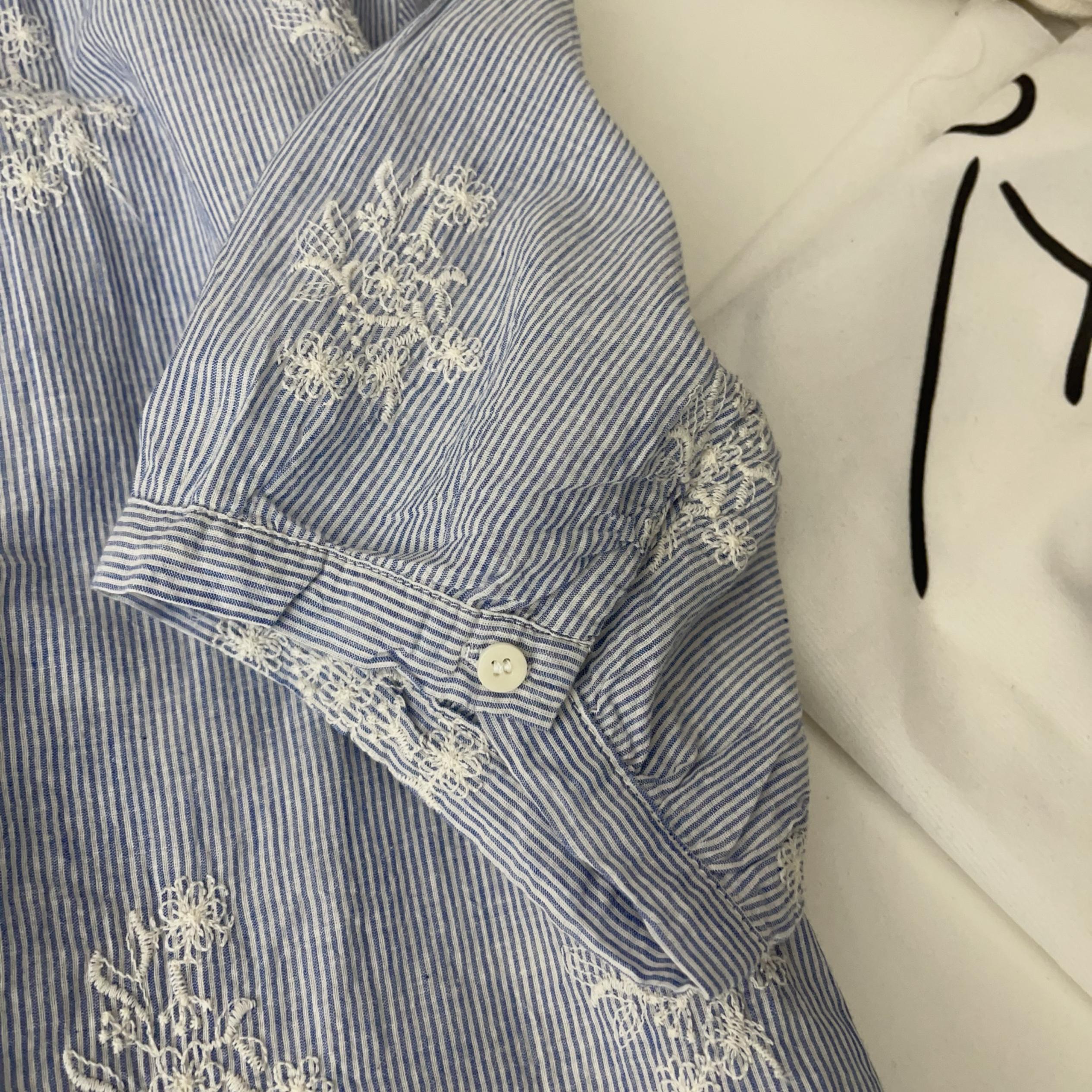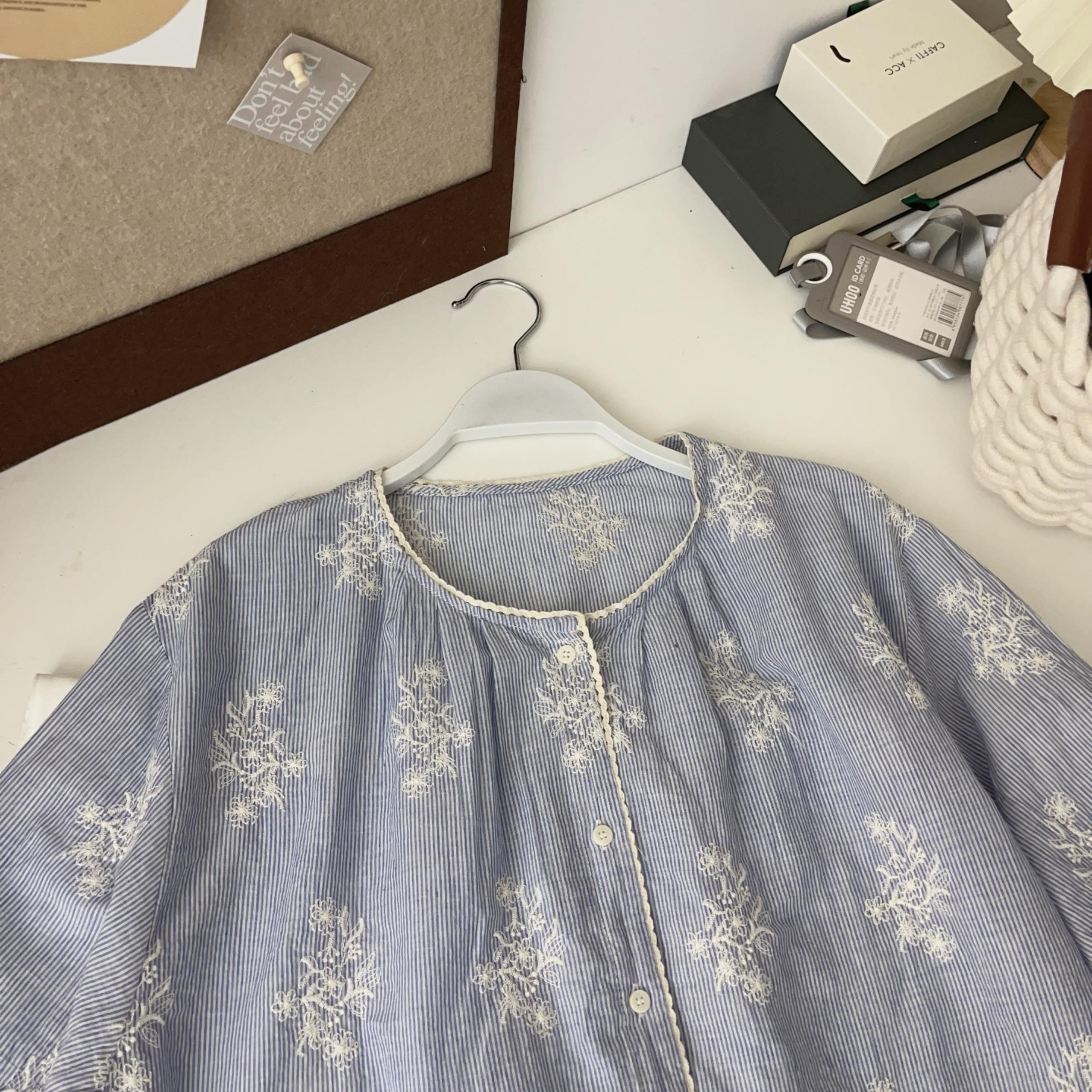 Verano 2025 Nuevo Estilo Coreano Moda Cuello Redondo Bordado Manga Corta Camisa para Mujer Diseño Holgado Sentido Pequeña Camisa Top Trendy